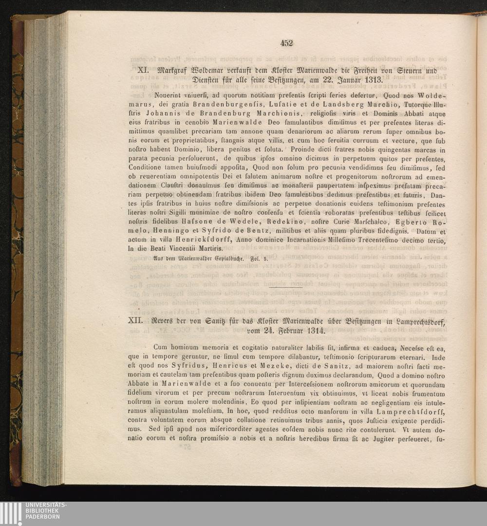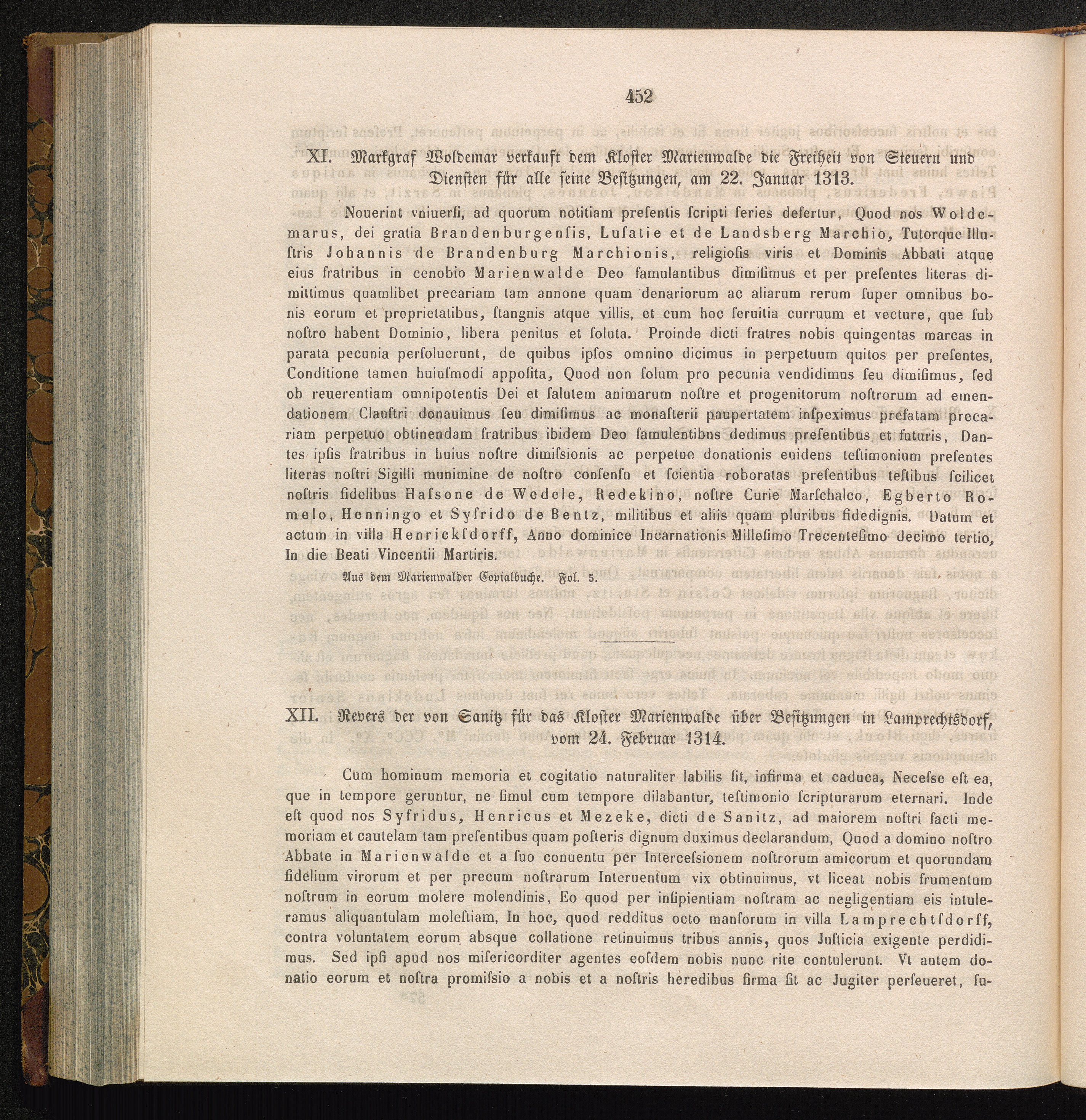XII. Revers der von Sanitz für das Kloster Marienwalde über Besitzungen in Lamprechtsdorf,[...]