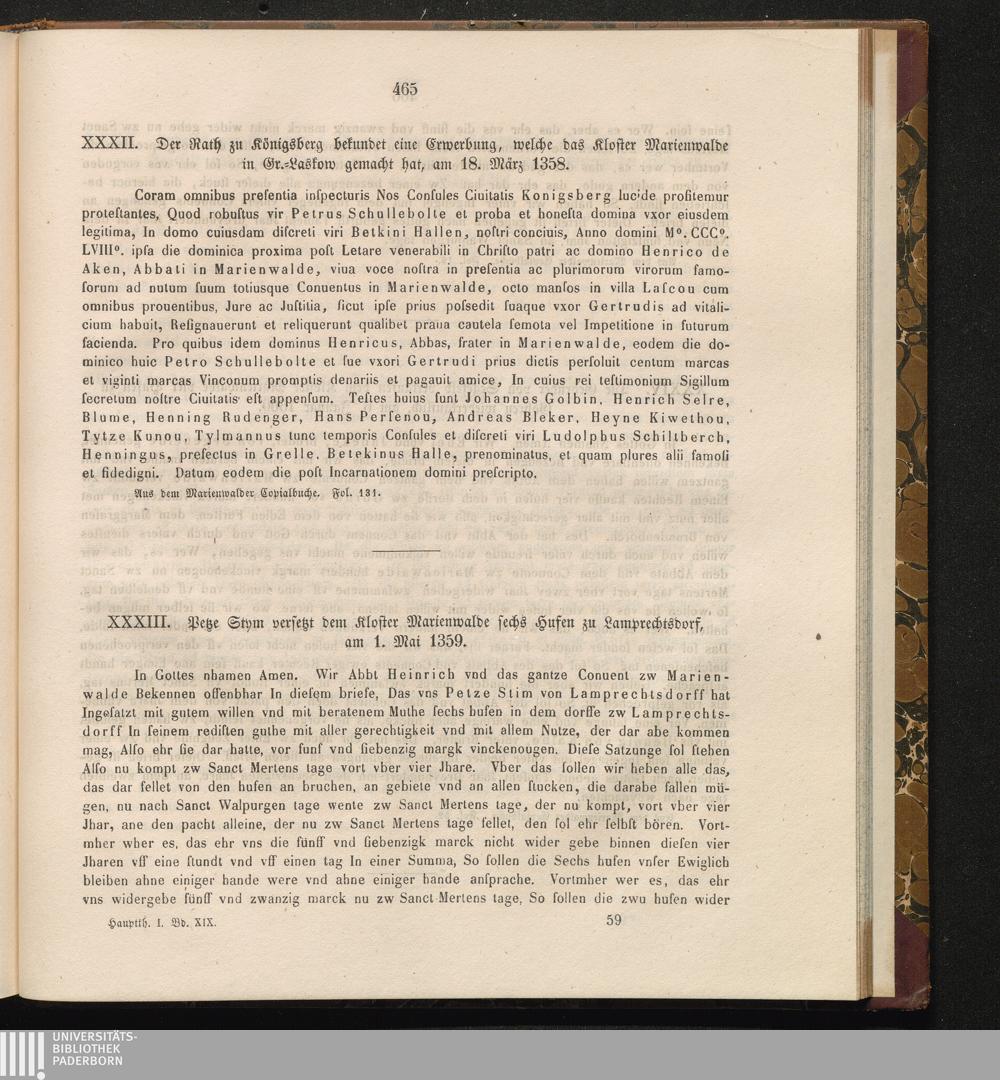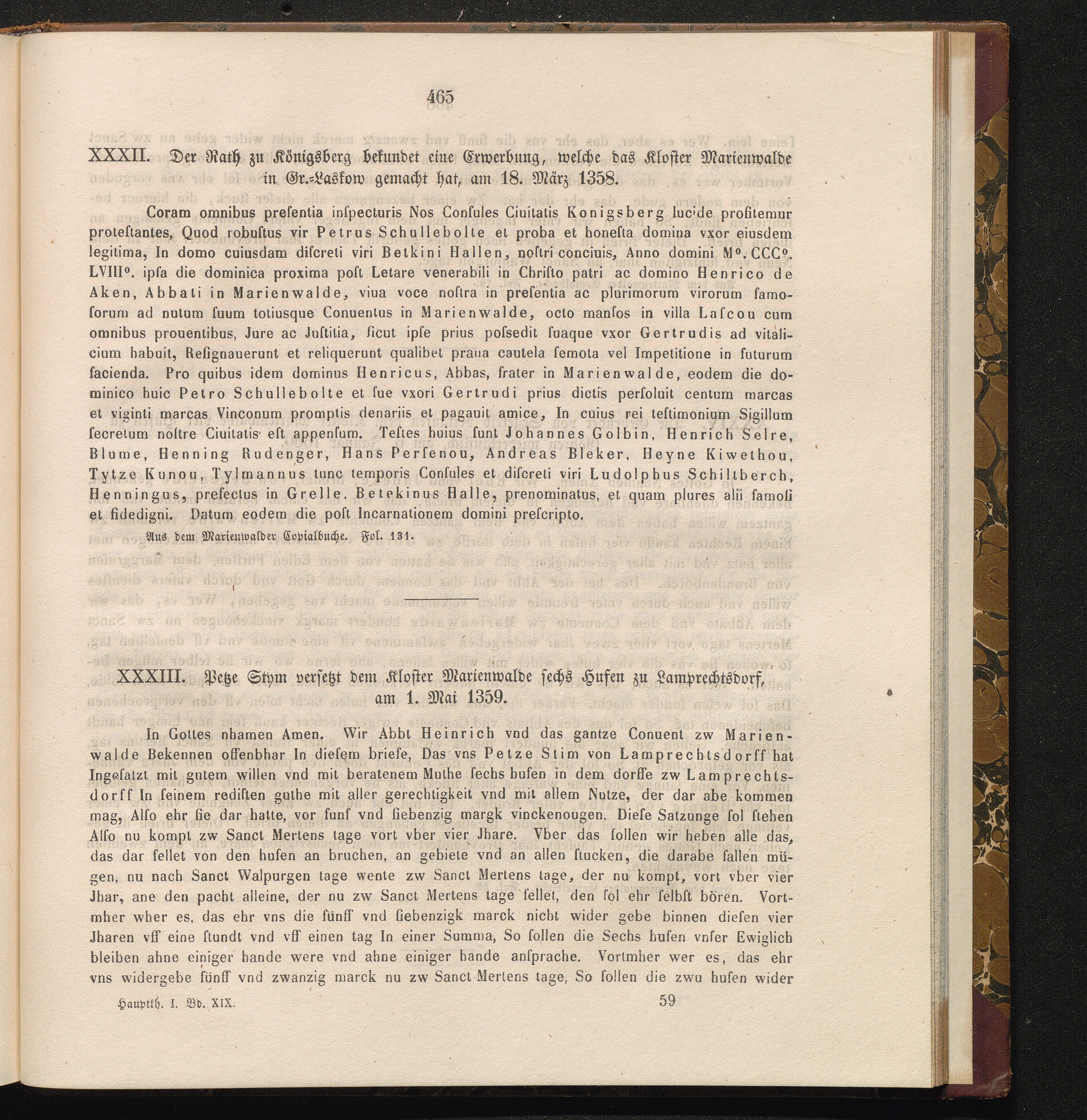 XXXII. Der Rath zu Königsberg bekundet eine Erwerbung, welche das Kloster Marienwalde[...]
