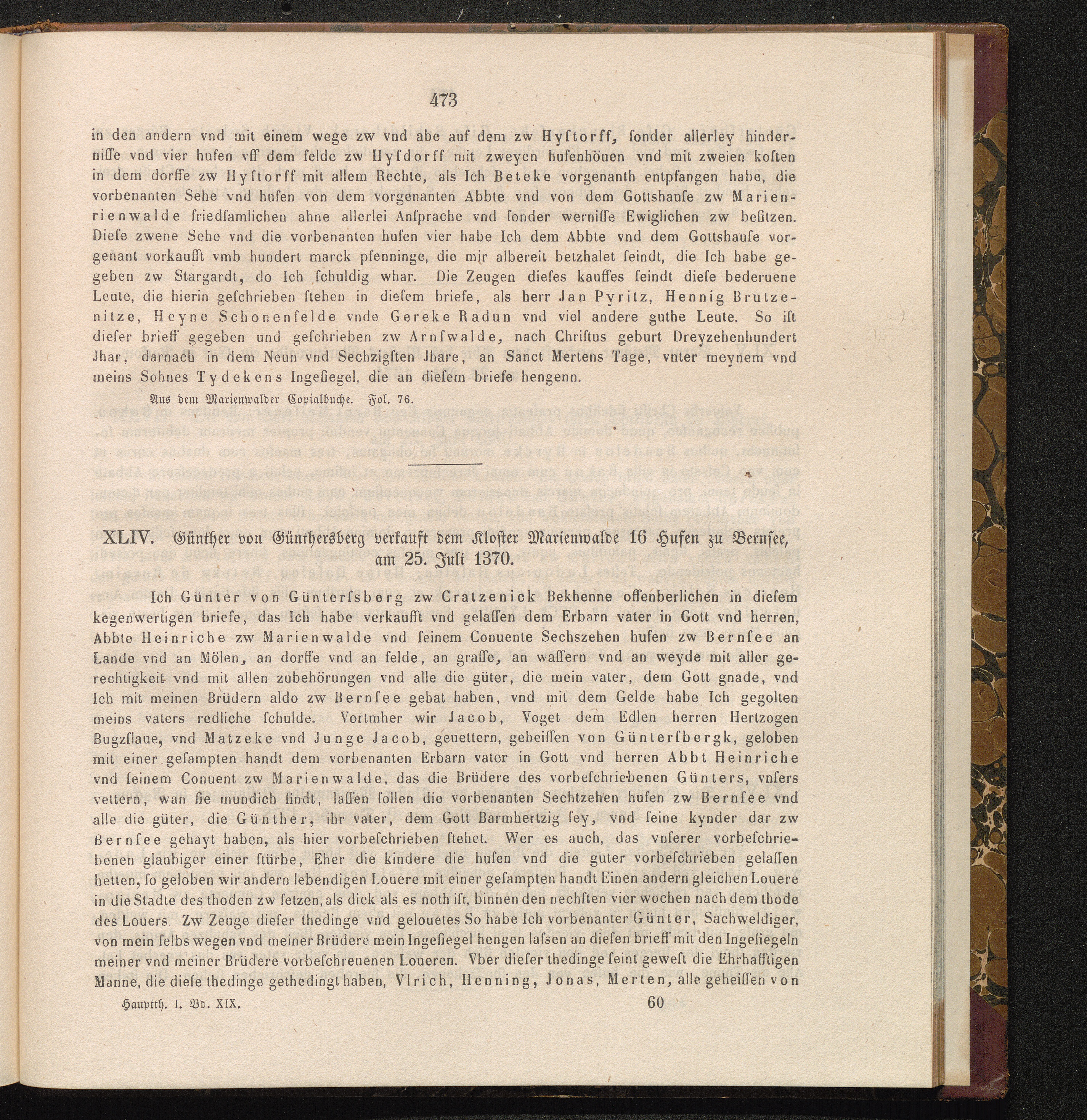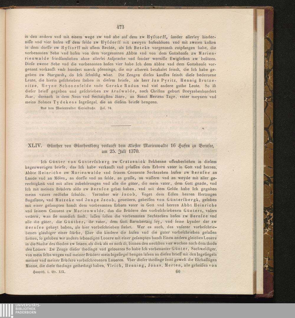 LXIII. Beteke von dem Borne verkauft dem Kloster Marienwalde zwei Seen bei Hitzdorf,[...]