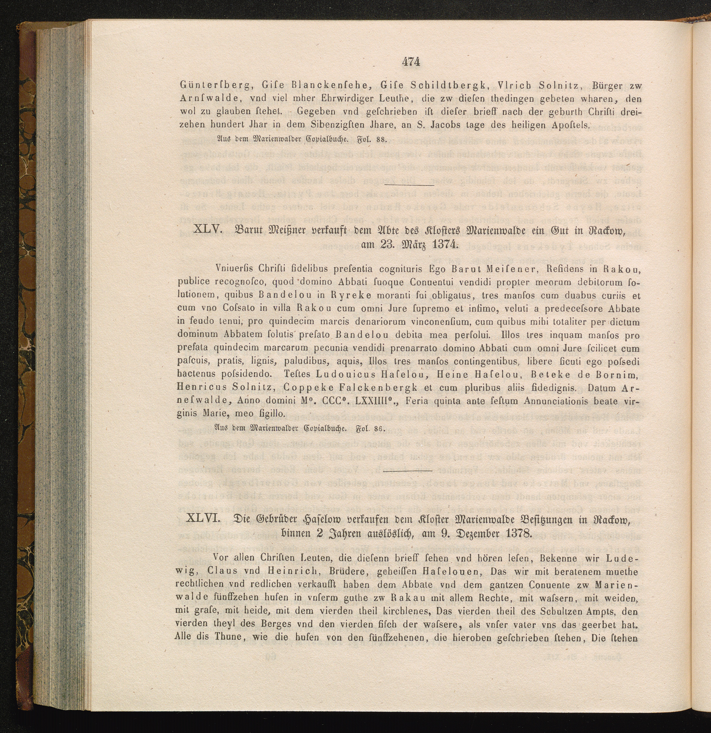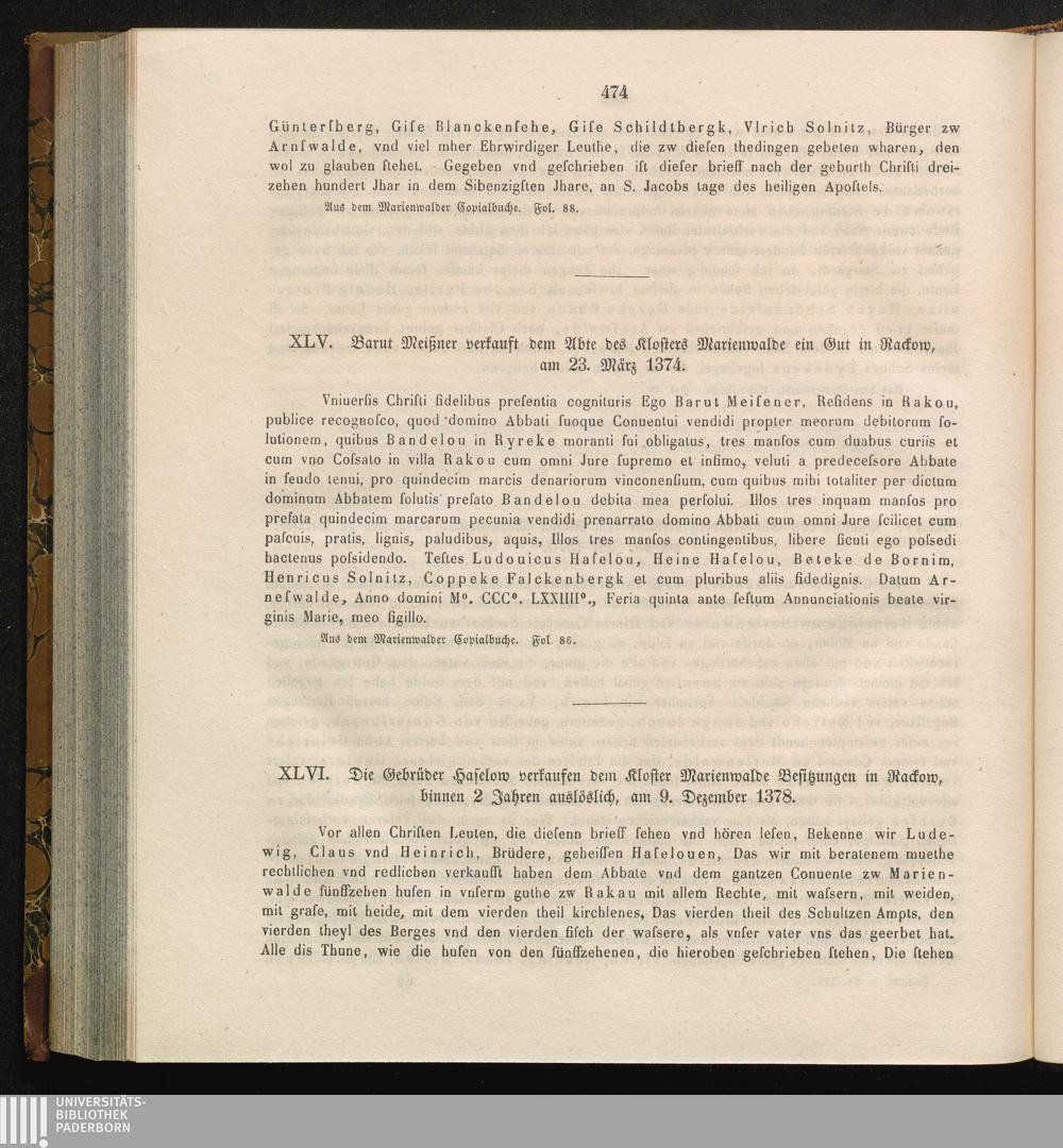 XLV. Barut Meißner verkauft dem Abte des Klosters Marienwalde ein Gut in Nackow,[...]