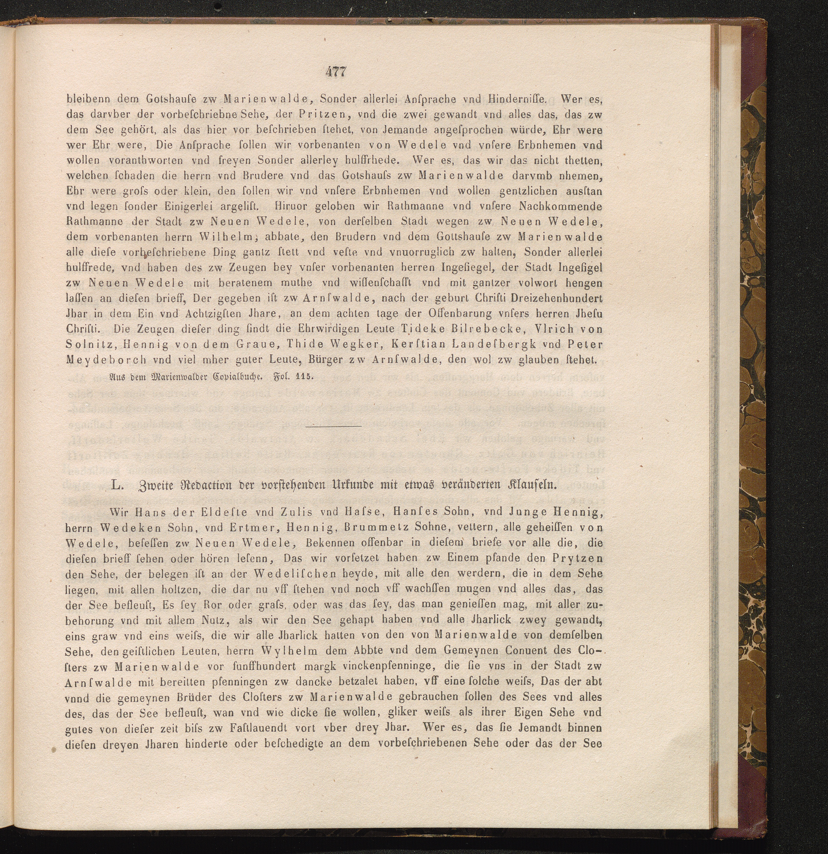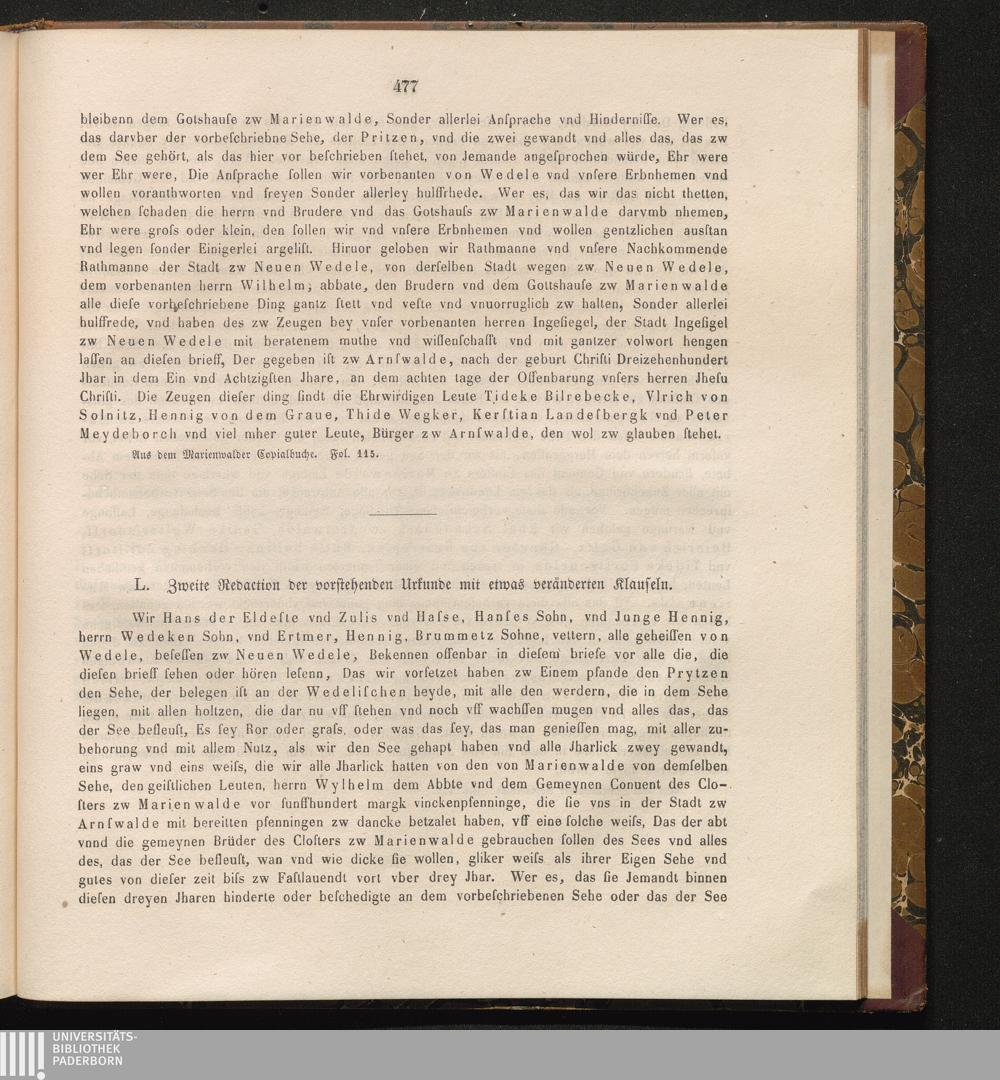 L. Zweite Redaction der vorstehenden Urkunde mit etwas veränderten Klauseln.