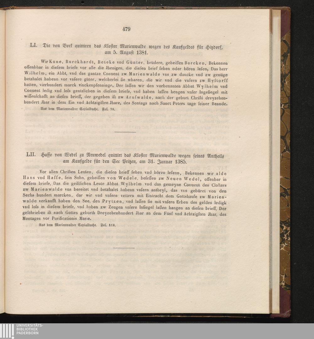 LI. Die von Bork quittiren das Kloster Marienwalde wegen des Kaufgeldes für Hitzdorf,[...]