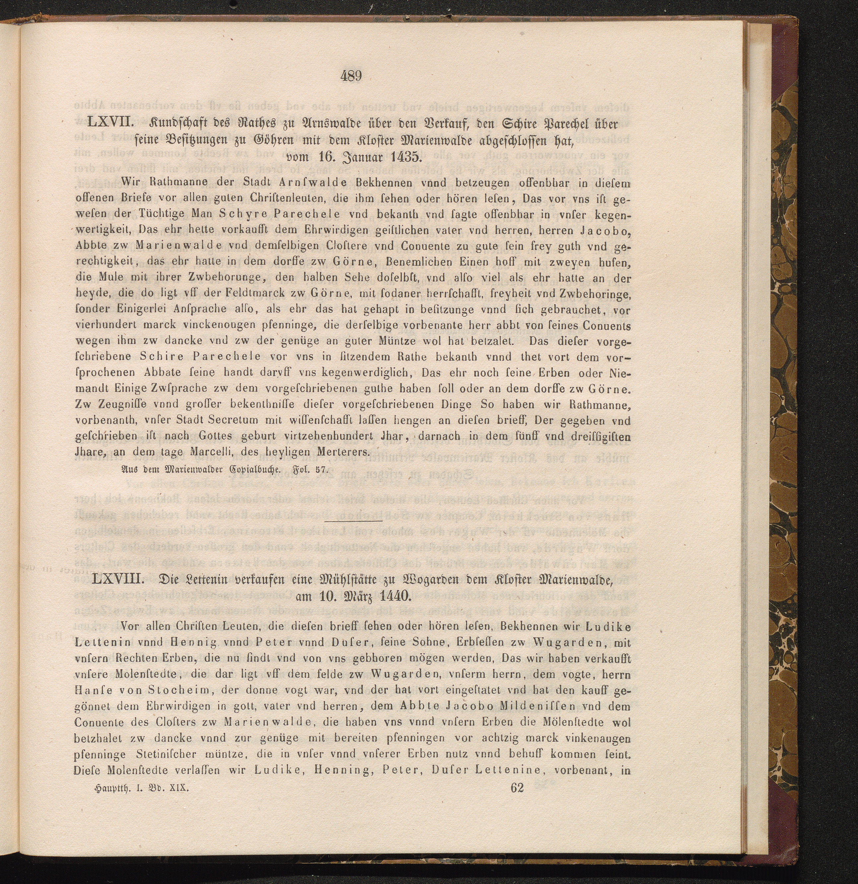 LXVII. Kundschaft des Rathes zu Arnswalde über den Verkauf, den Schire Parechel über[...]