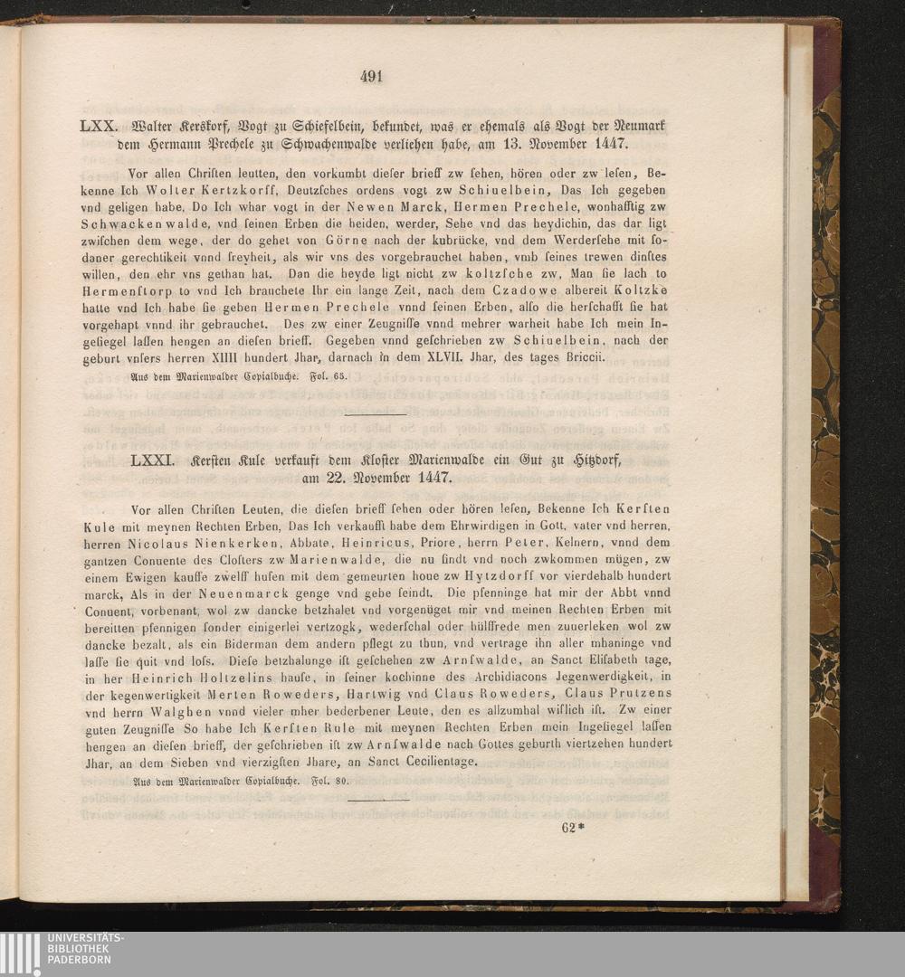 Fünfte Abtheilung. Die Neumark. (Fortsetzung).