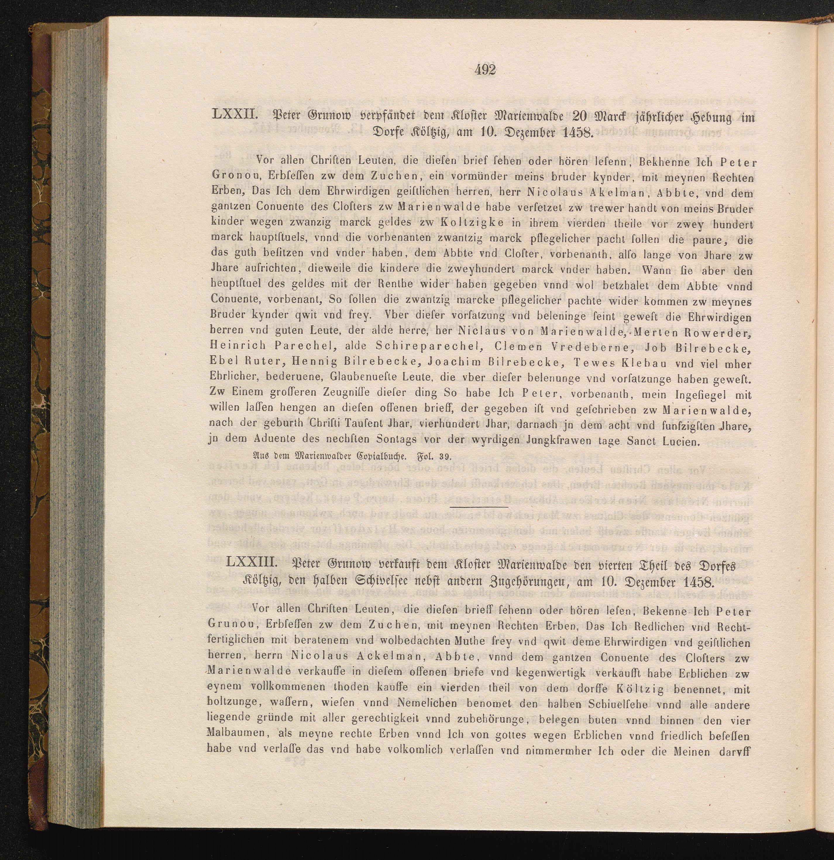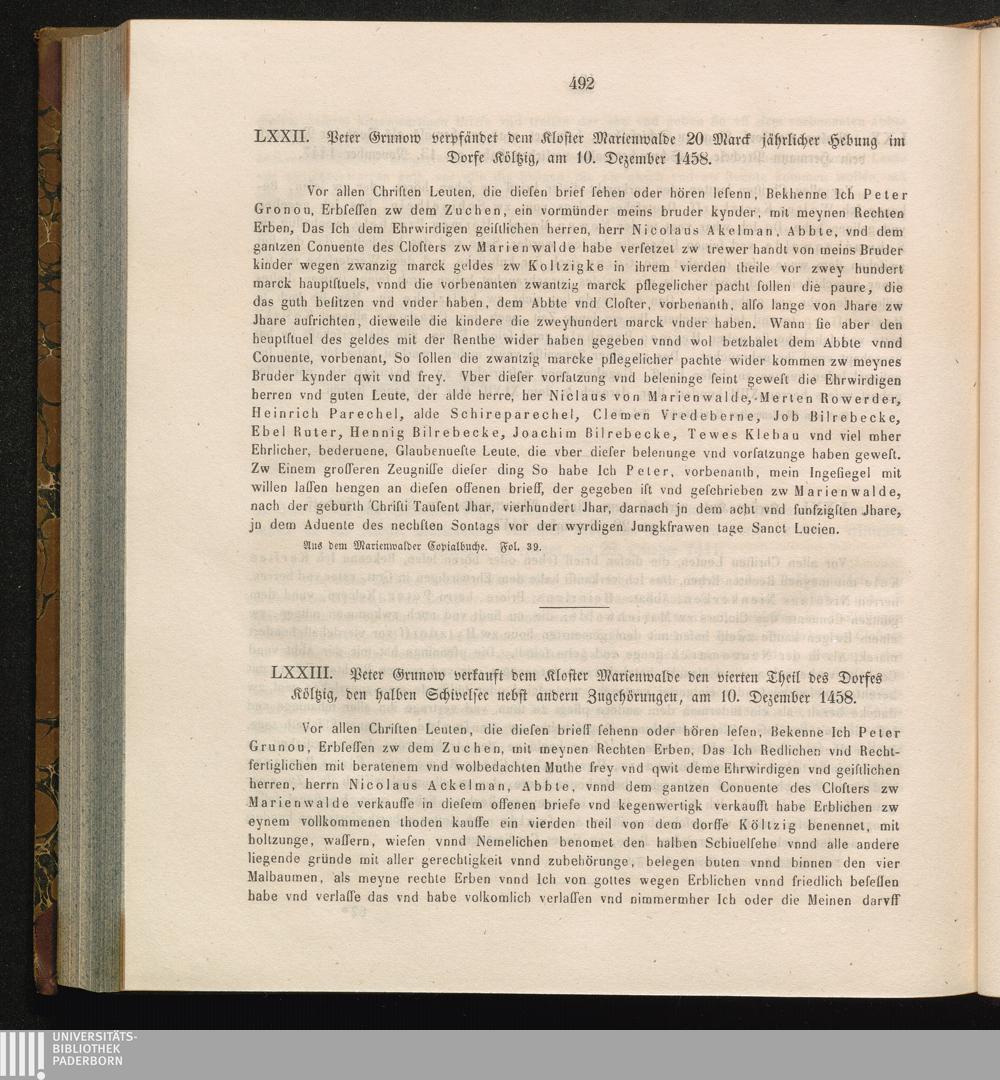 LXXII. Peter Grunow verpfändet dem Kloster Marienwalde 20 Mark jährlicher Hebung[...]