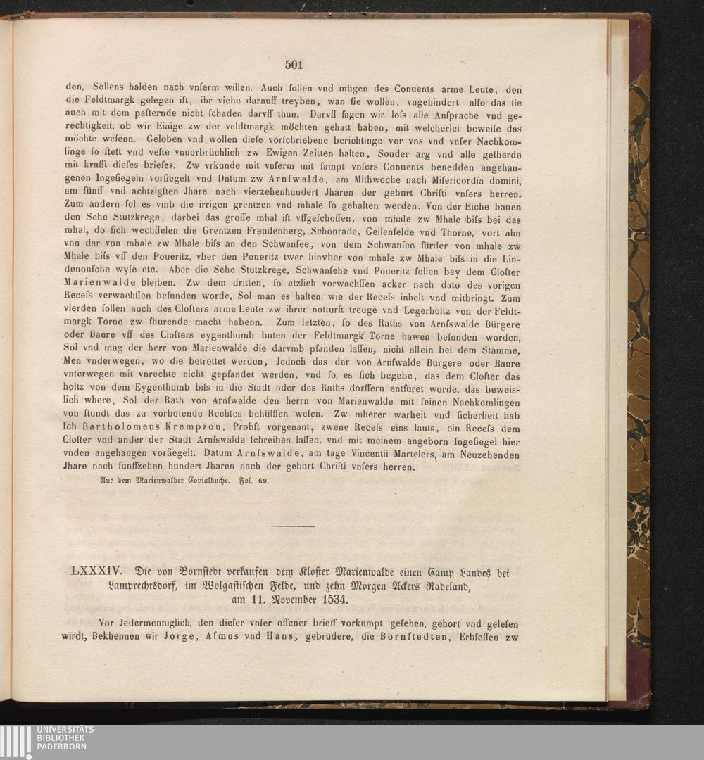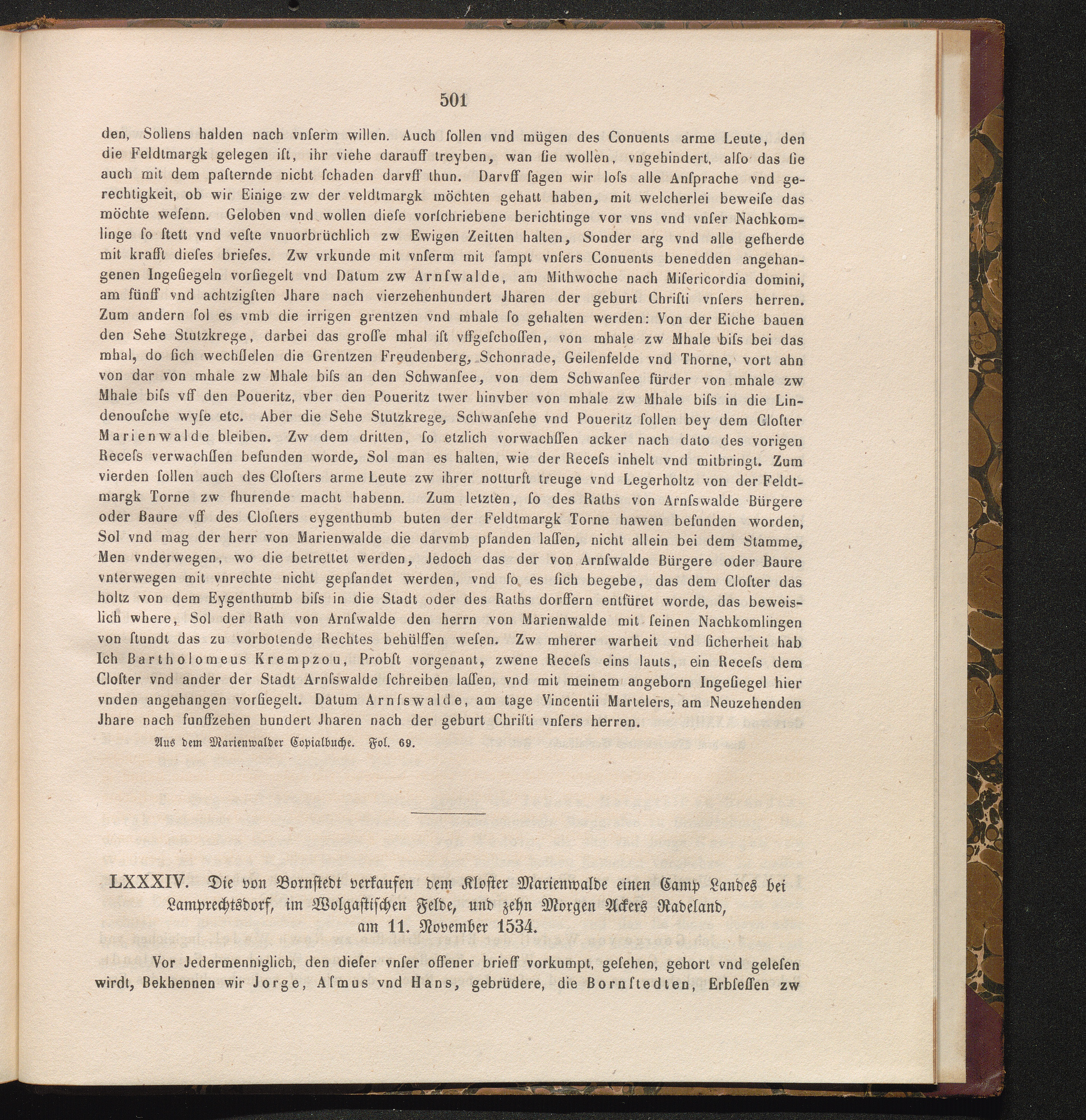 LXXXIV. Die von Bornstedt verkaufen dem Kloster Marienwalde einen Camp Landes bei[...]