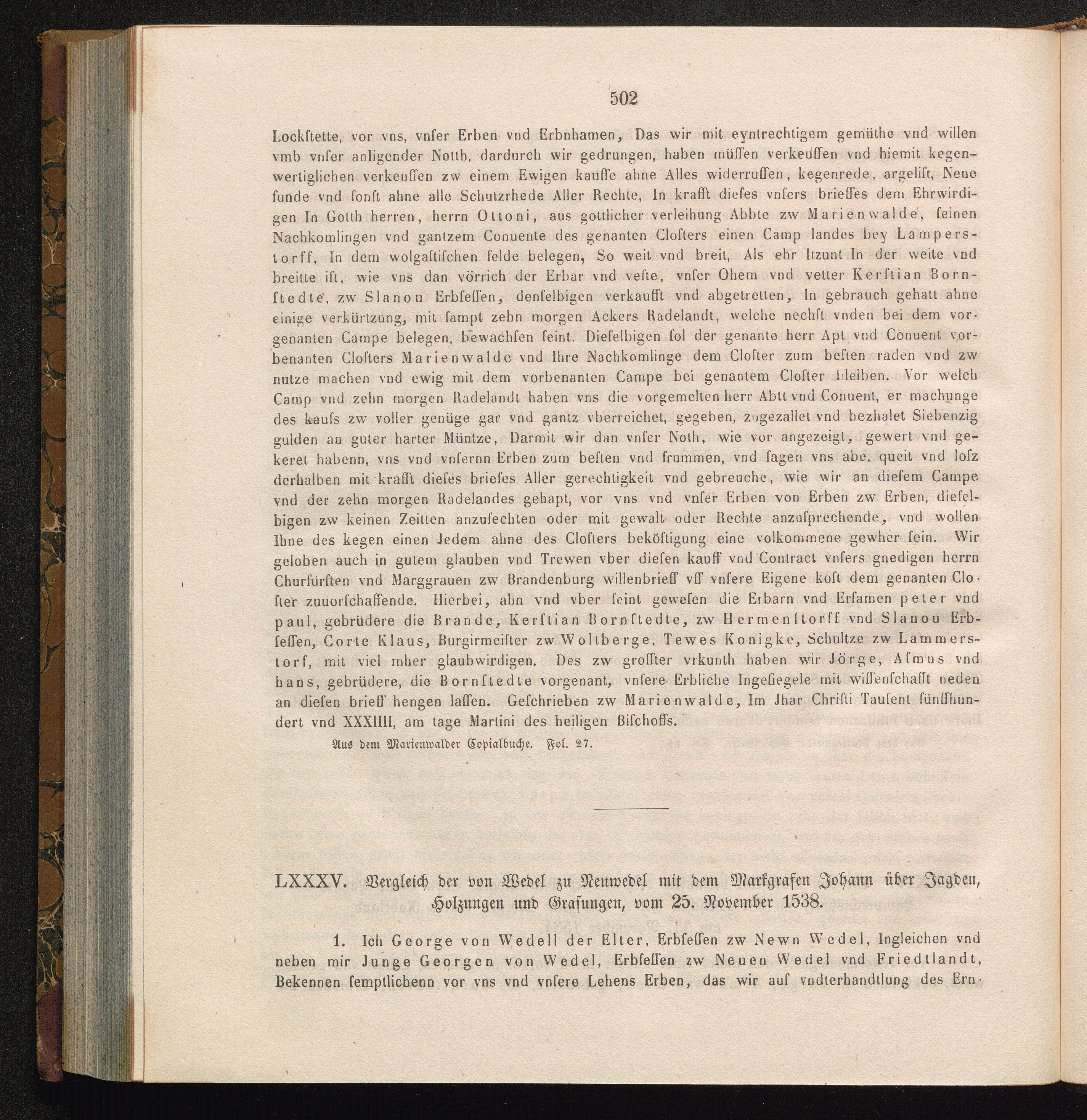 LXXXV. Vergleich der von Wedel zu Neuwedel mit dem Markgrafen Johann über Jagden,[...]