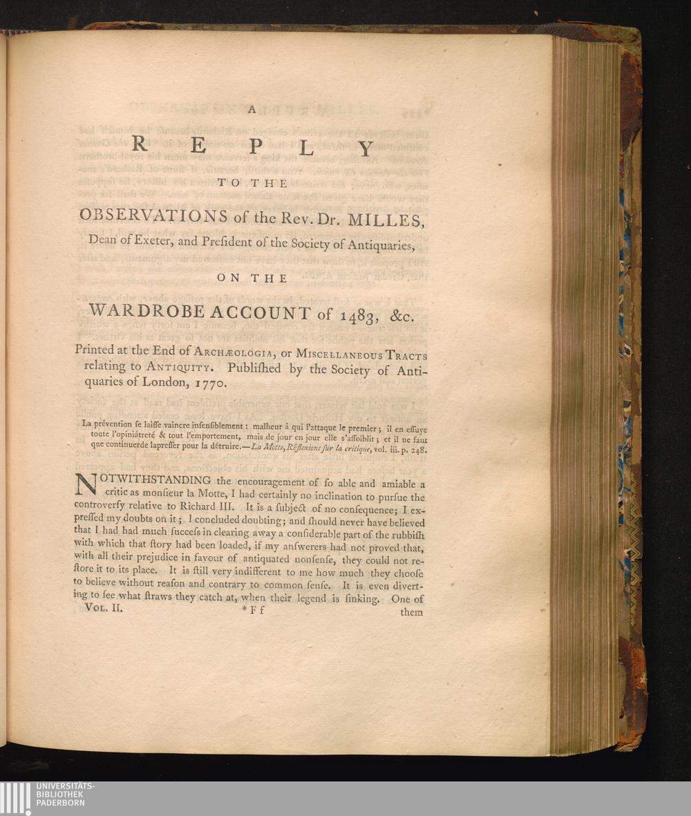 Reply to the Observations of the Rev. Dr. Milles