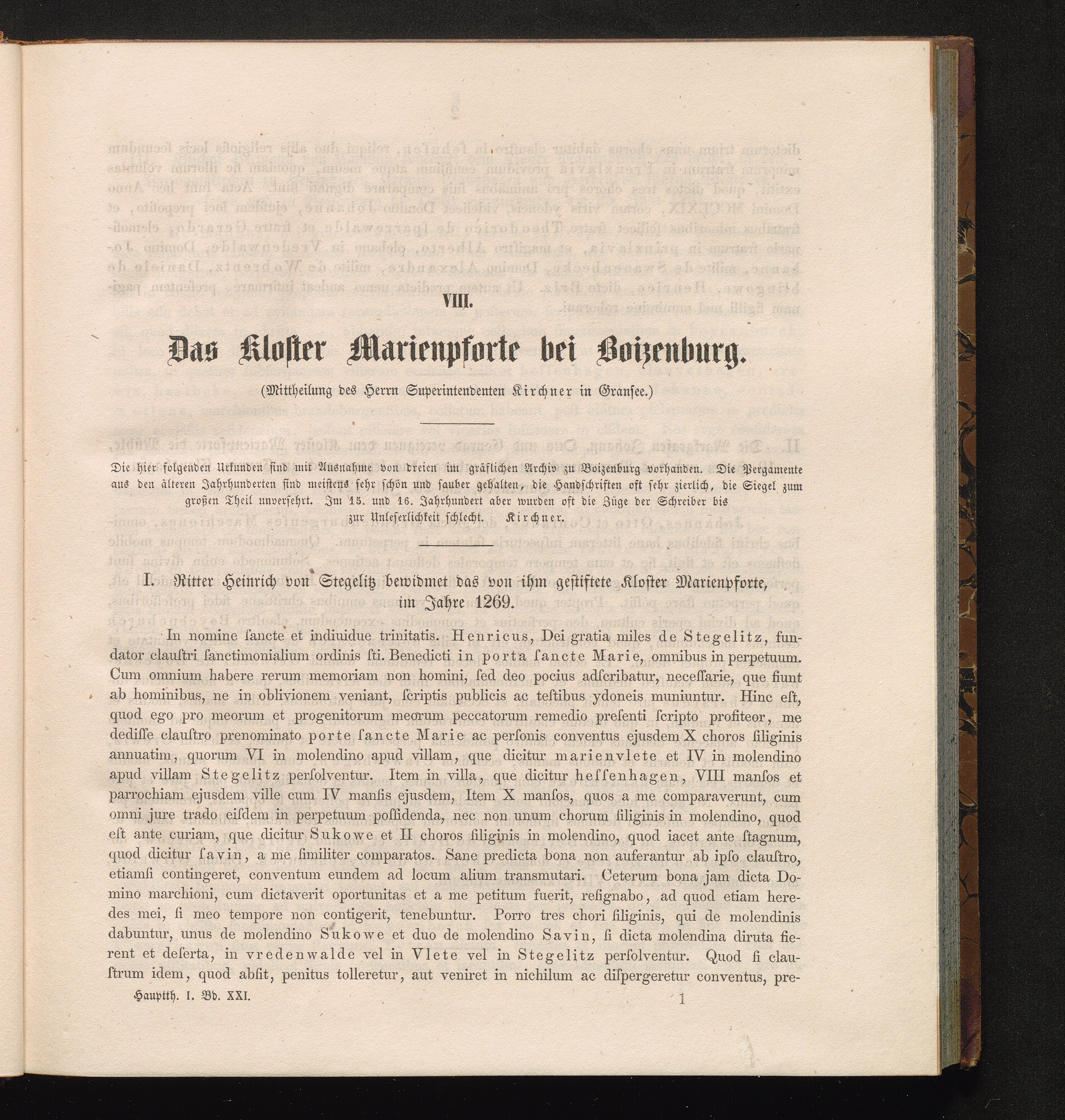 I. Ritter Heinrich von Stegelitz bewidmet das von ihm gestiftete Kloster Marienpforte,[...]