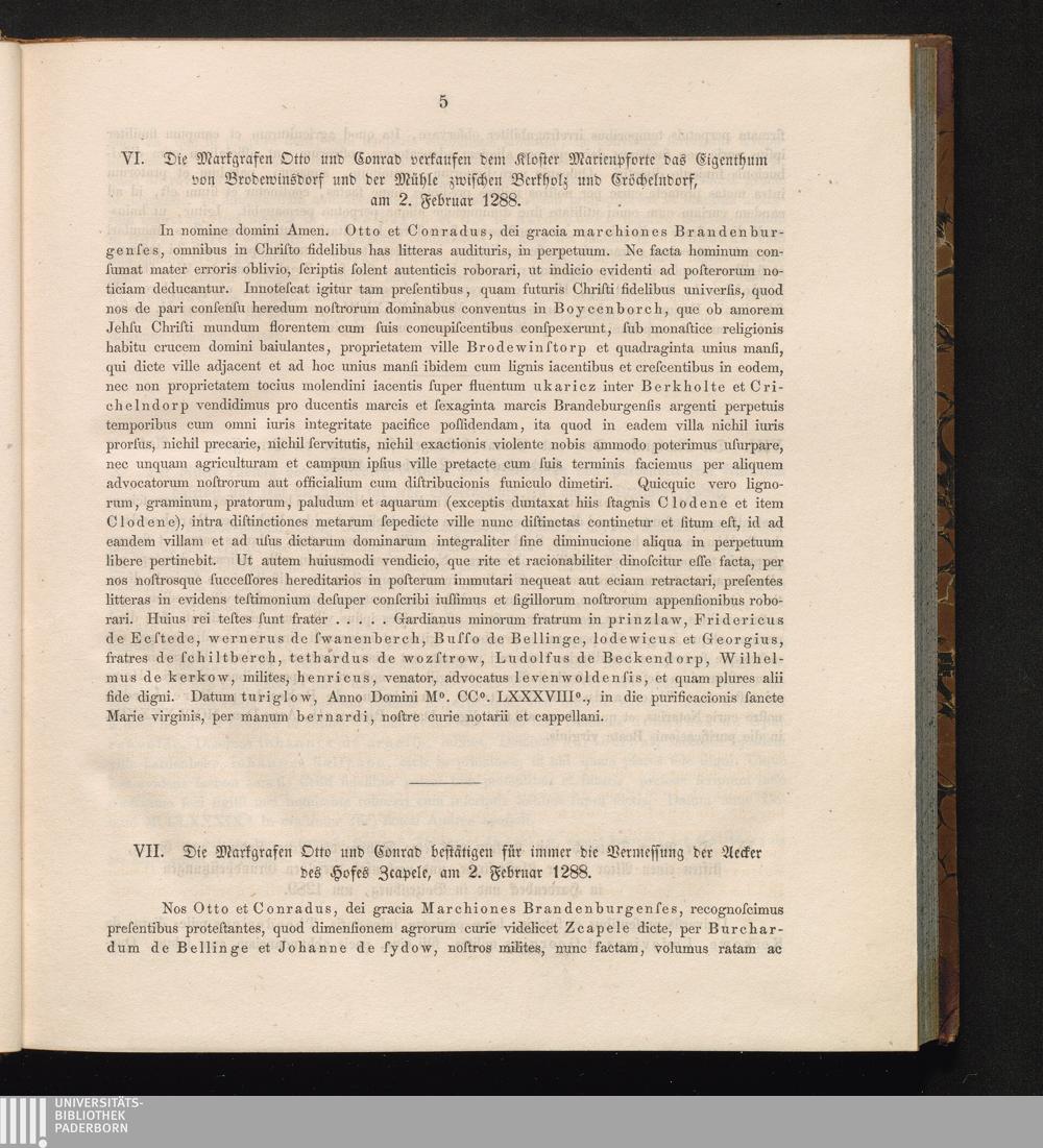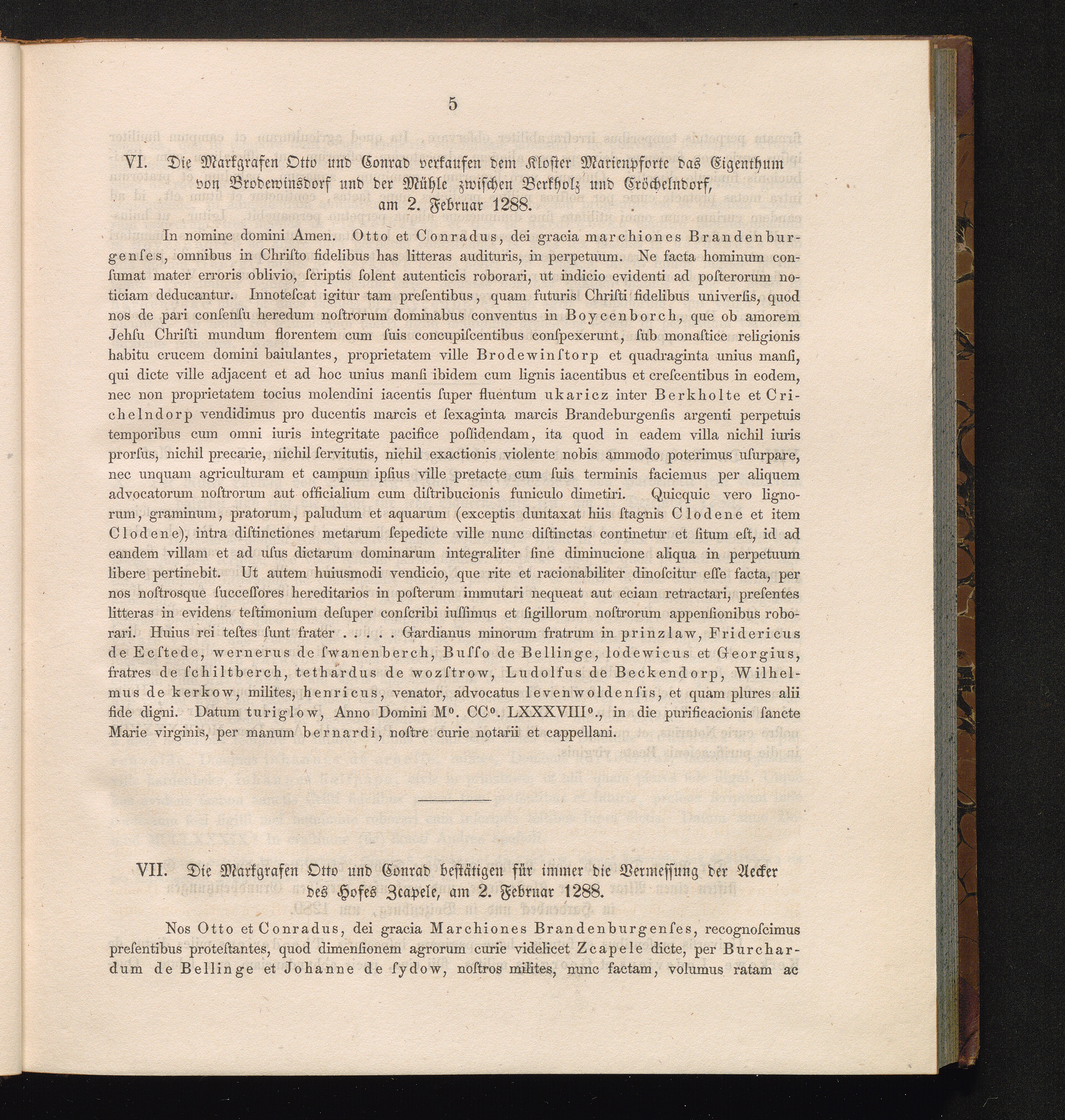 VII. Die Markgrafen Otto und Conrad bestätigen für immer die Vermessung der Aecker[...]
