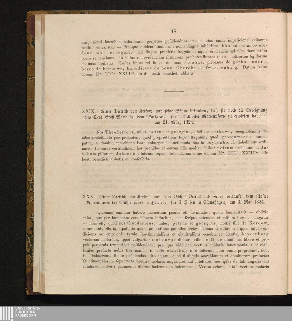 XXX. Ritter Dietrich von Kerkow und seine Söhne Petrus und Georg verkaufen dem Kloster[...]