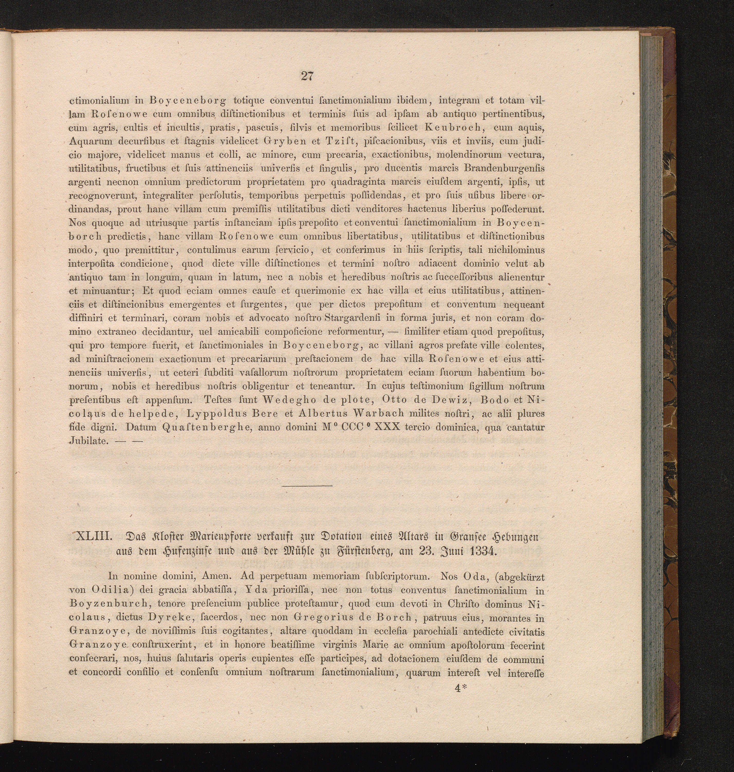XLIII. Das Kloster Marienpforte verkauft zur Dotation eines Altars in Gransee Hebungen[...]