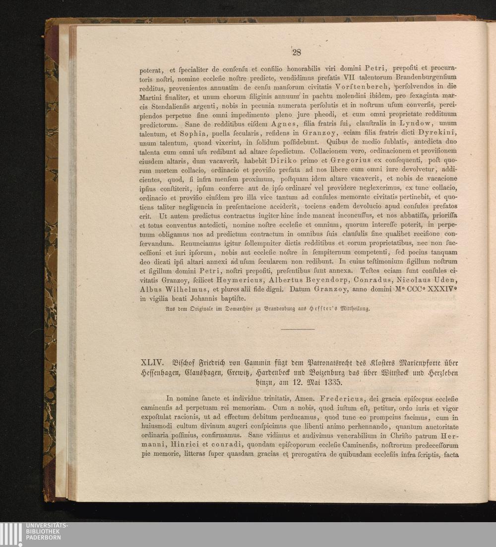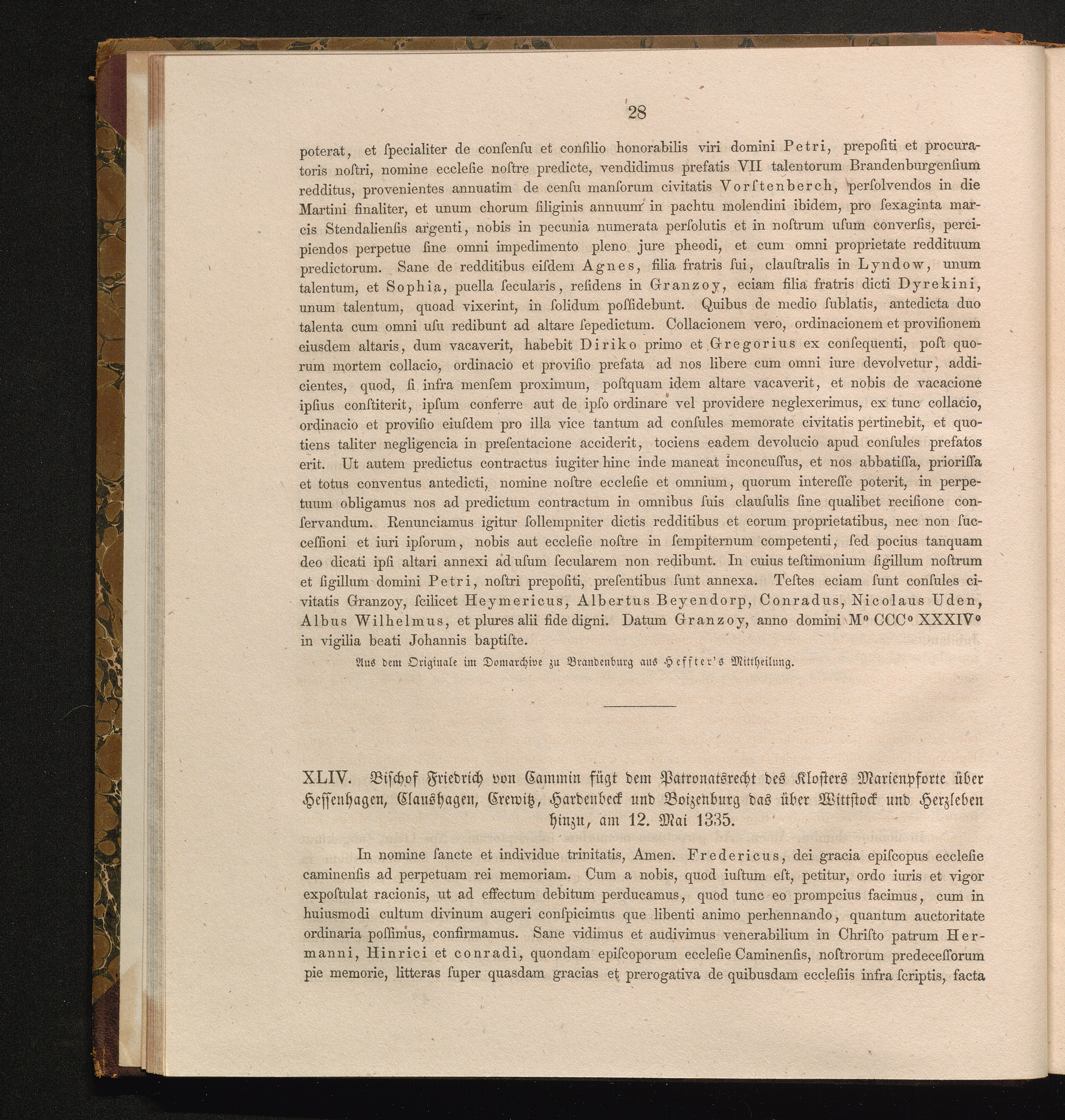 XLIV. Bischof Friedrich von Cammin fügt dem Patronatsrecht des Klosters Marienpforte[...]