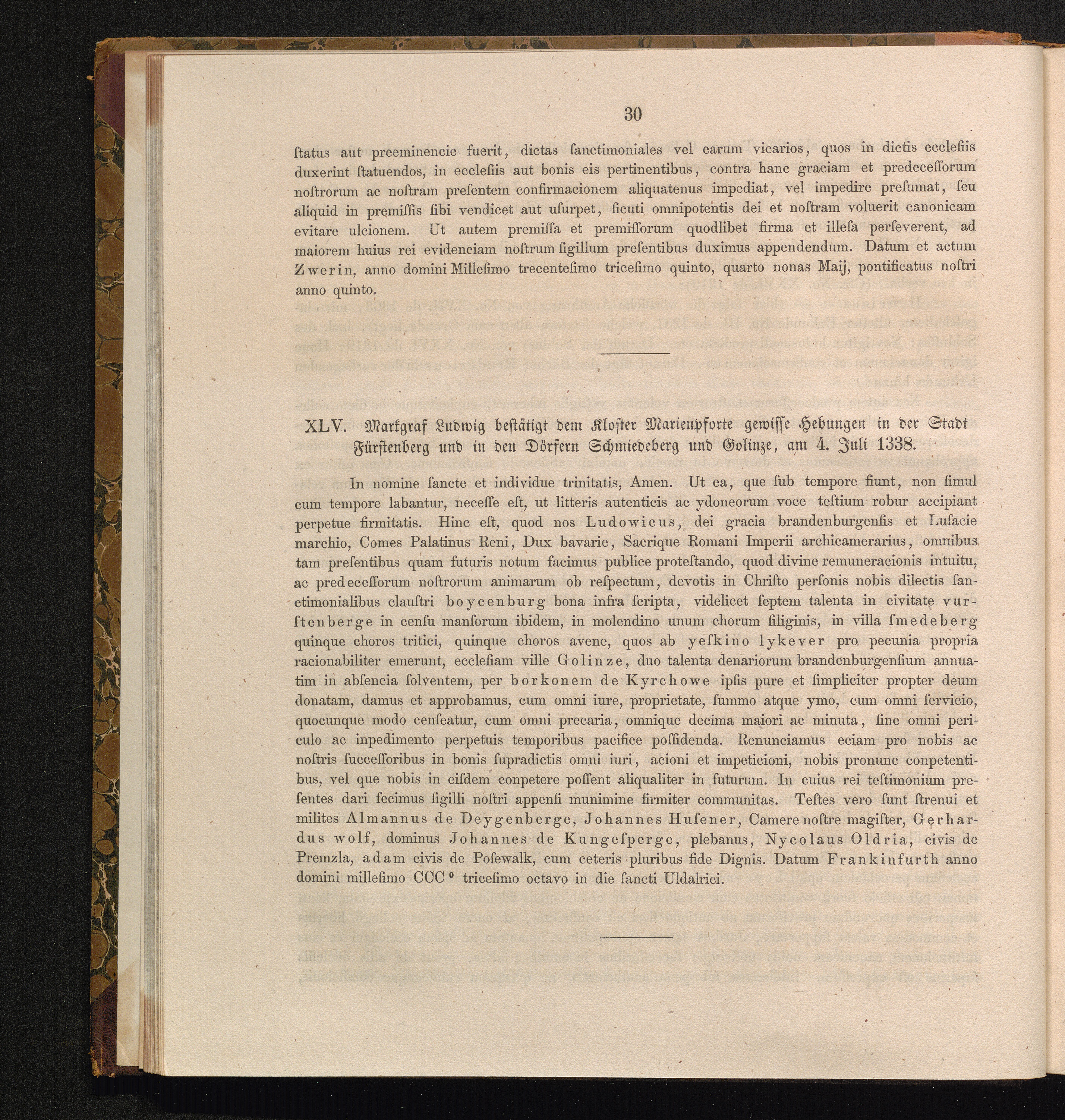 XLV. Markgraf Ludwig dem Kloster Marienpforte gewisse Hebungen in der Stadt Fürstenberg[...]