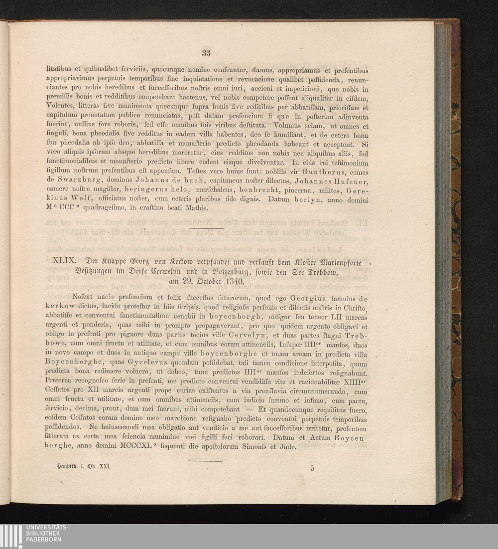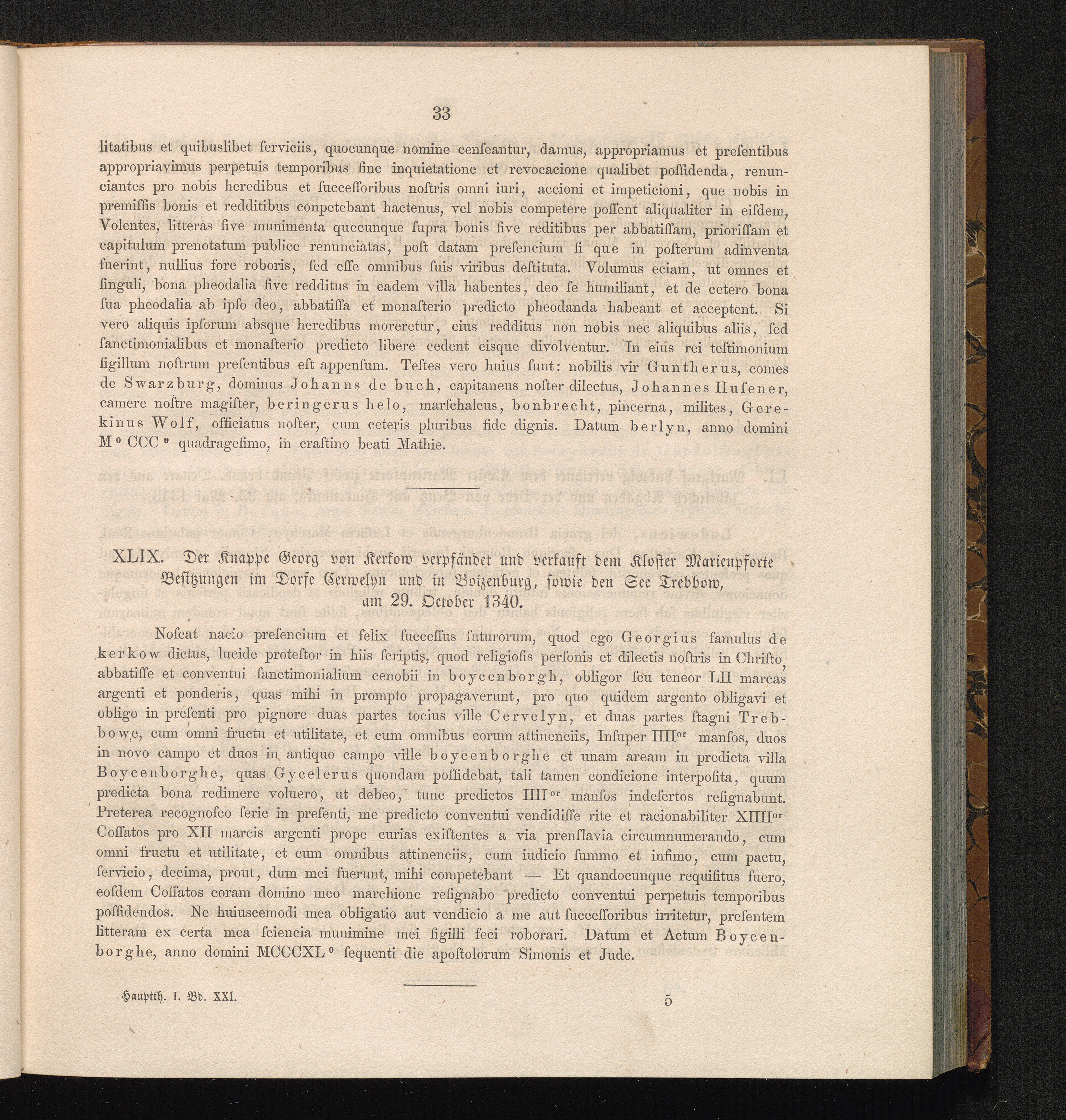 XLIX. Der Knappe Georg von Kerkow verpfändet und verkauft dem Kloster Marienpforte[...]