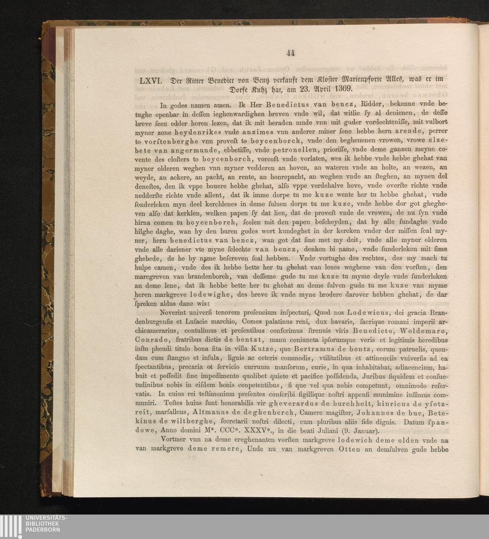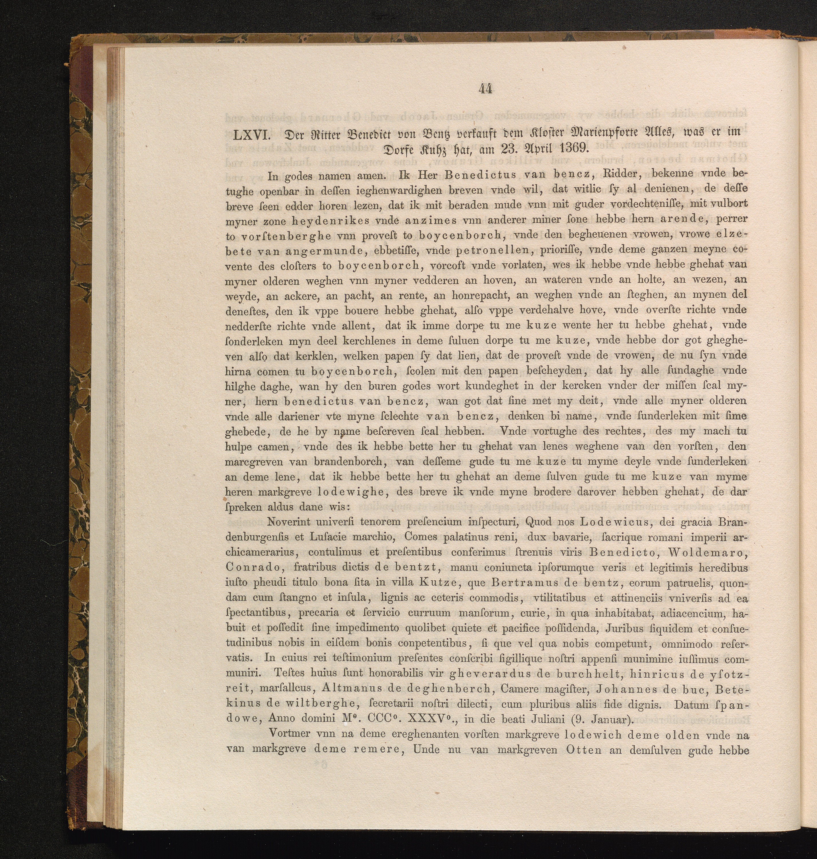 LXVI. Der Ritter Benedict von Bentz verkauft dem Kloster Marienpforte Alles, was[...]