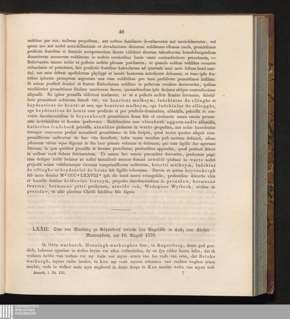LXXII. Otto von Warburg zu Röpersdorf verleiht sein Angefälle in Kuhz dem Kloster[...]