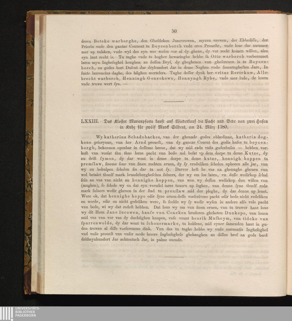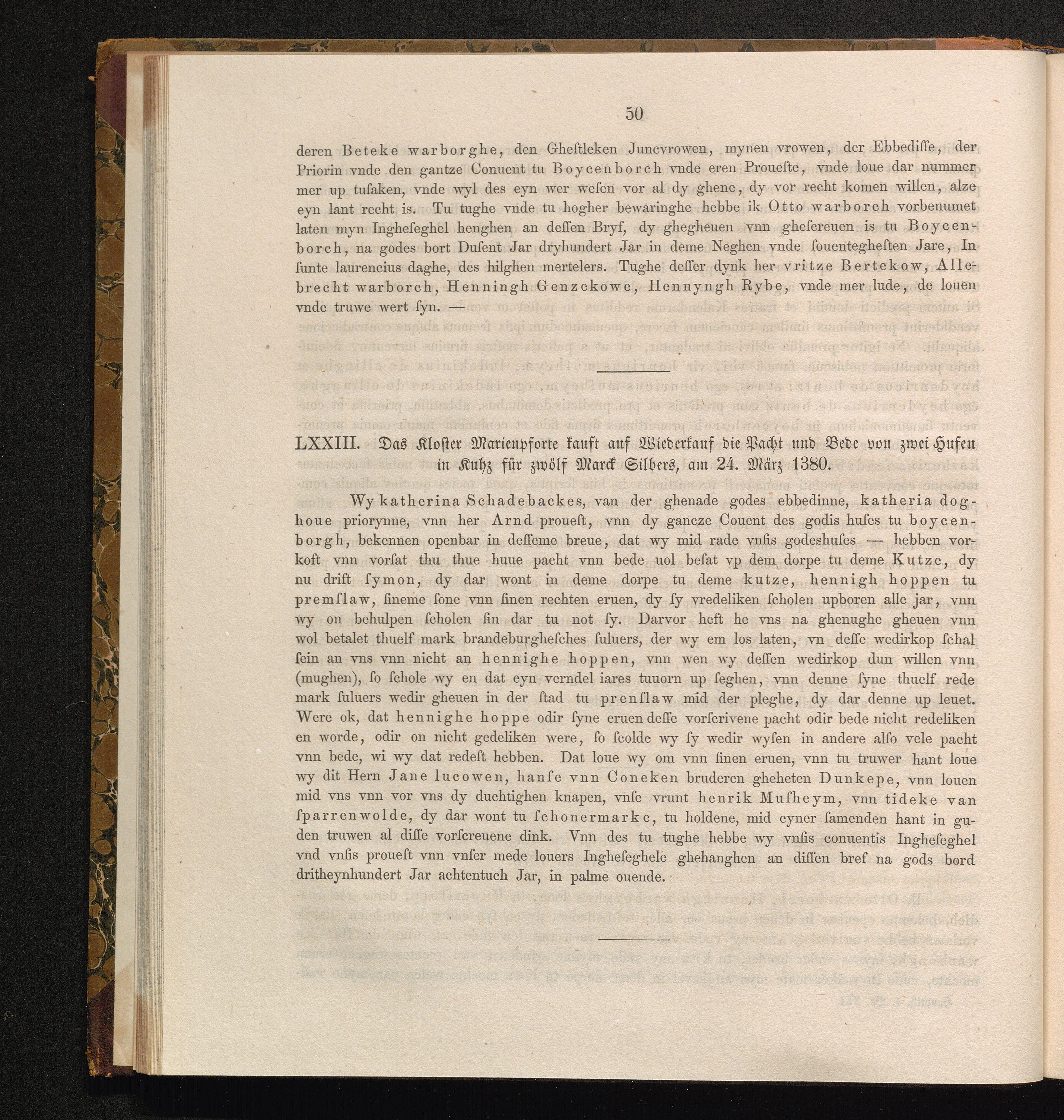 LXXIII. Das Kloster Marienpforte kauft auf Wiederkauf die Pacht und Bede von zwei[...]