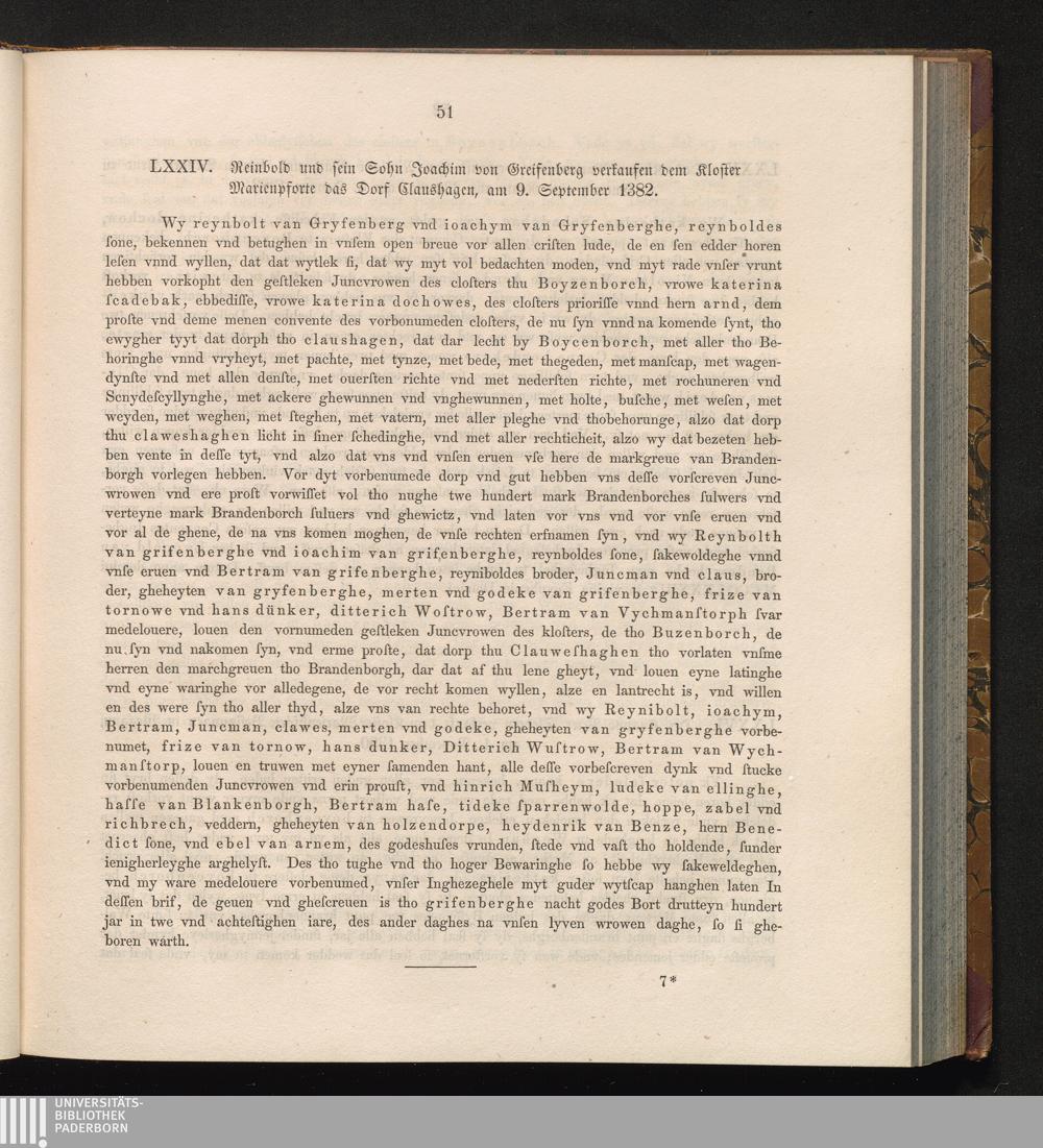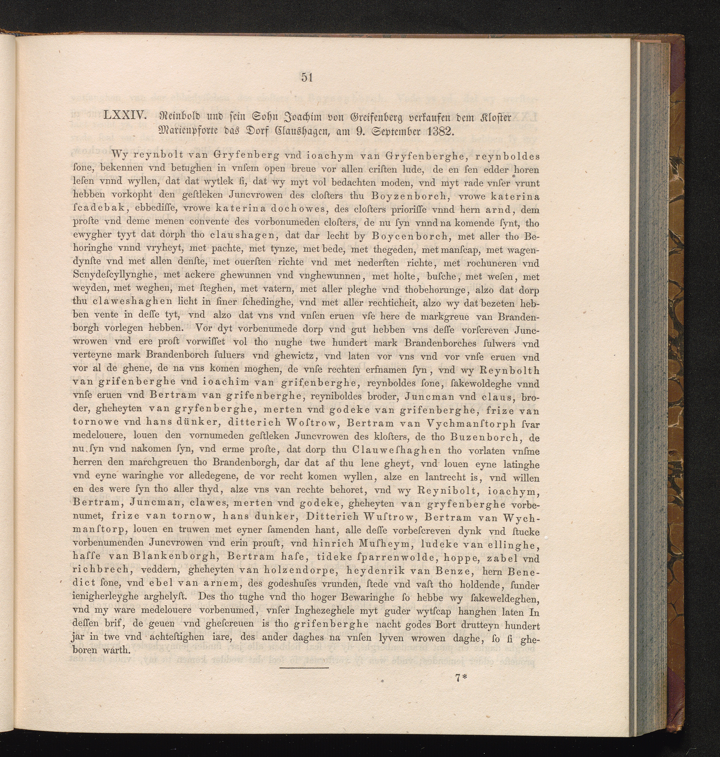 LXXIV. Reinhold und sein Sohn Joachim von Greifenberg verkaufen dem Kloster Marienpforte[...]