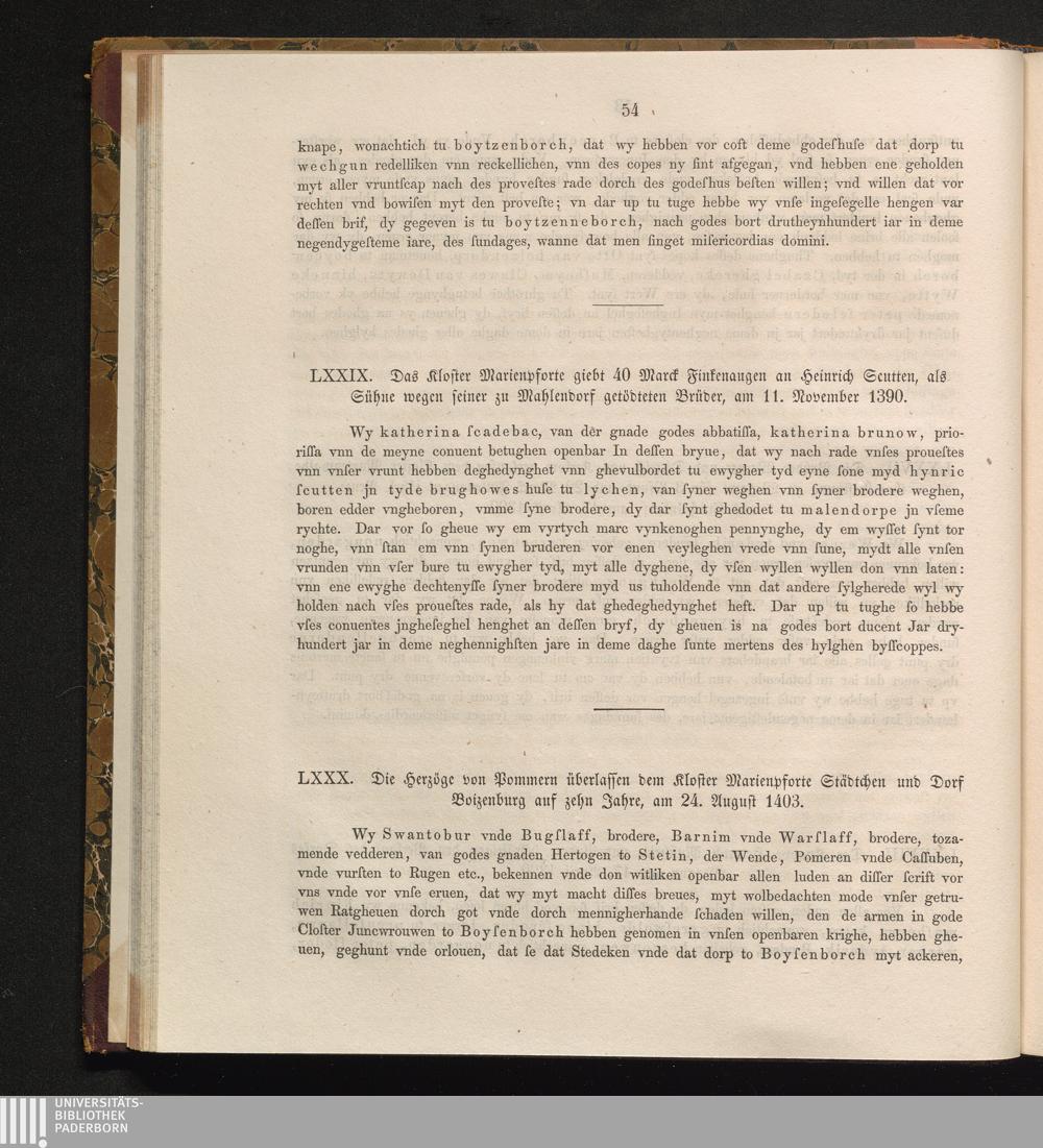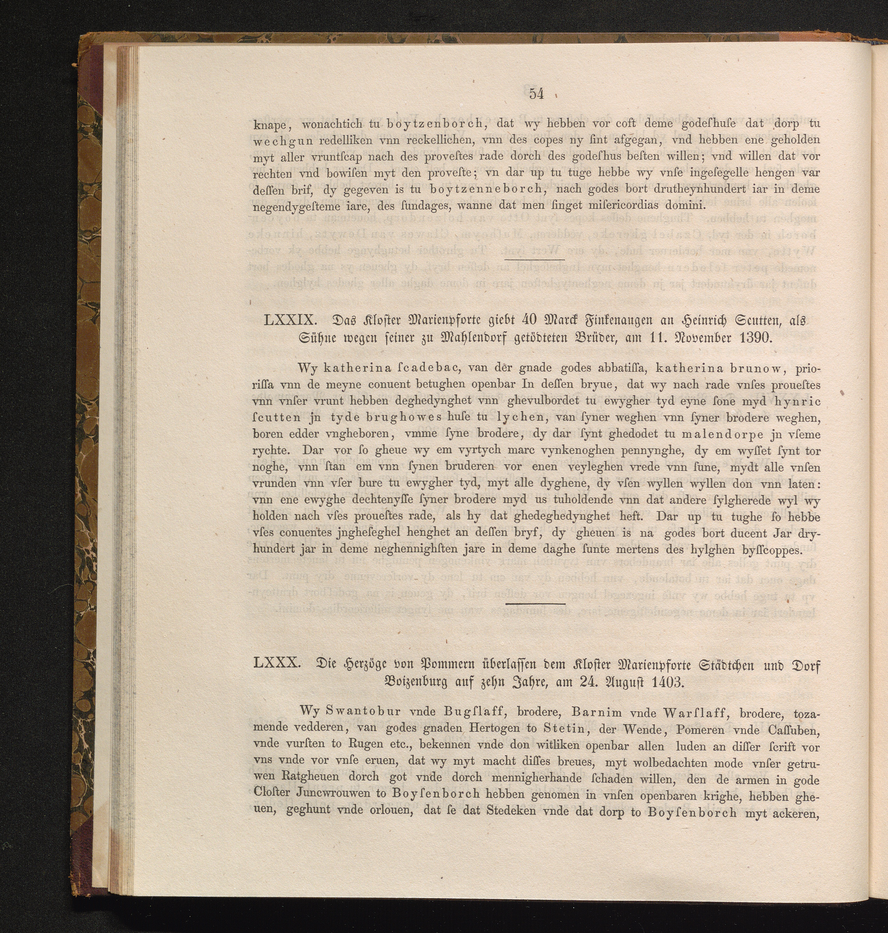 LXXX. Die Herzöge von Pommern überlassen dem Kloster Marienpforte Städtchen und Dorf[...]