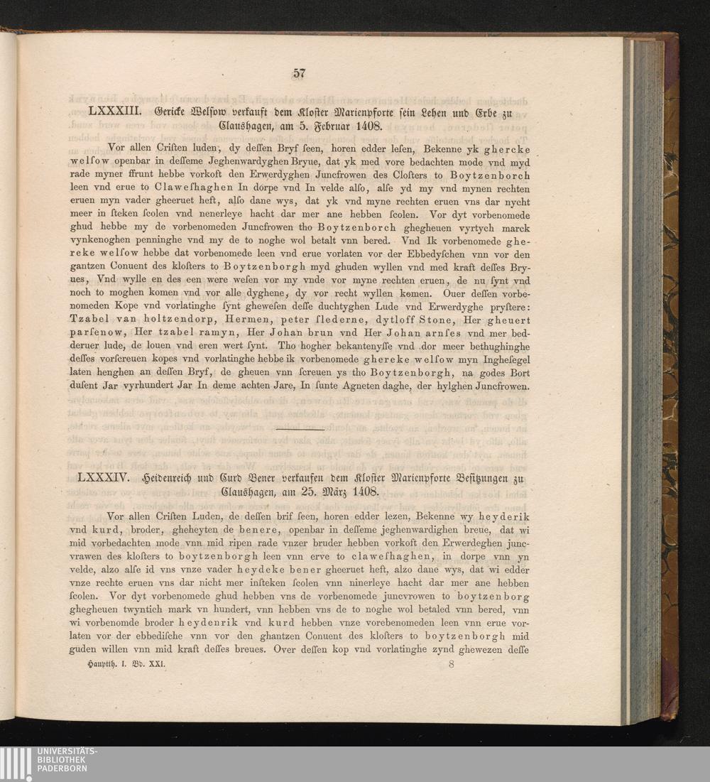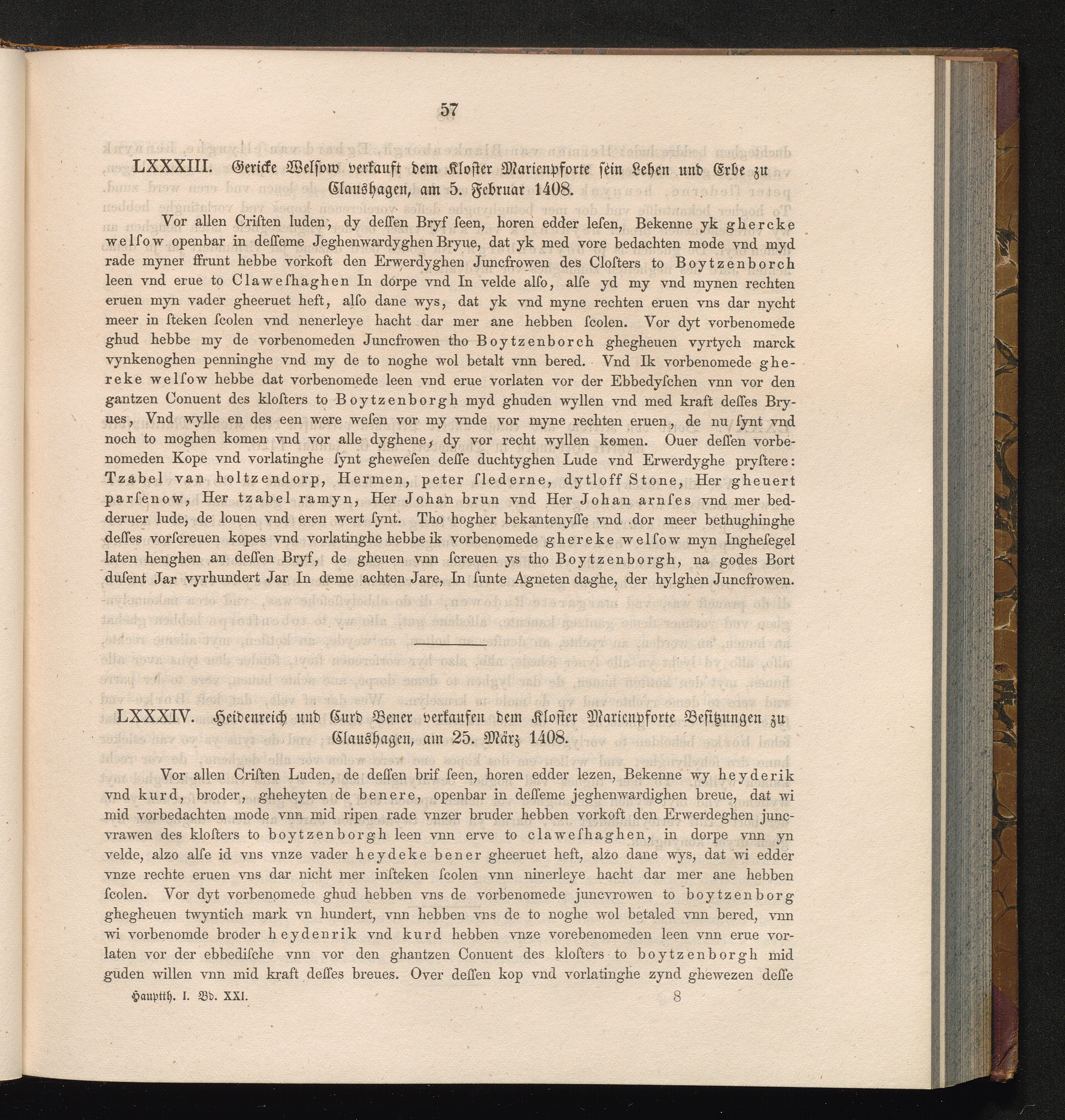 LXXXIV. Heidenreich und Curd Bener verkaufen dem Kloster Marienpforte Besitzungen[...]