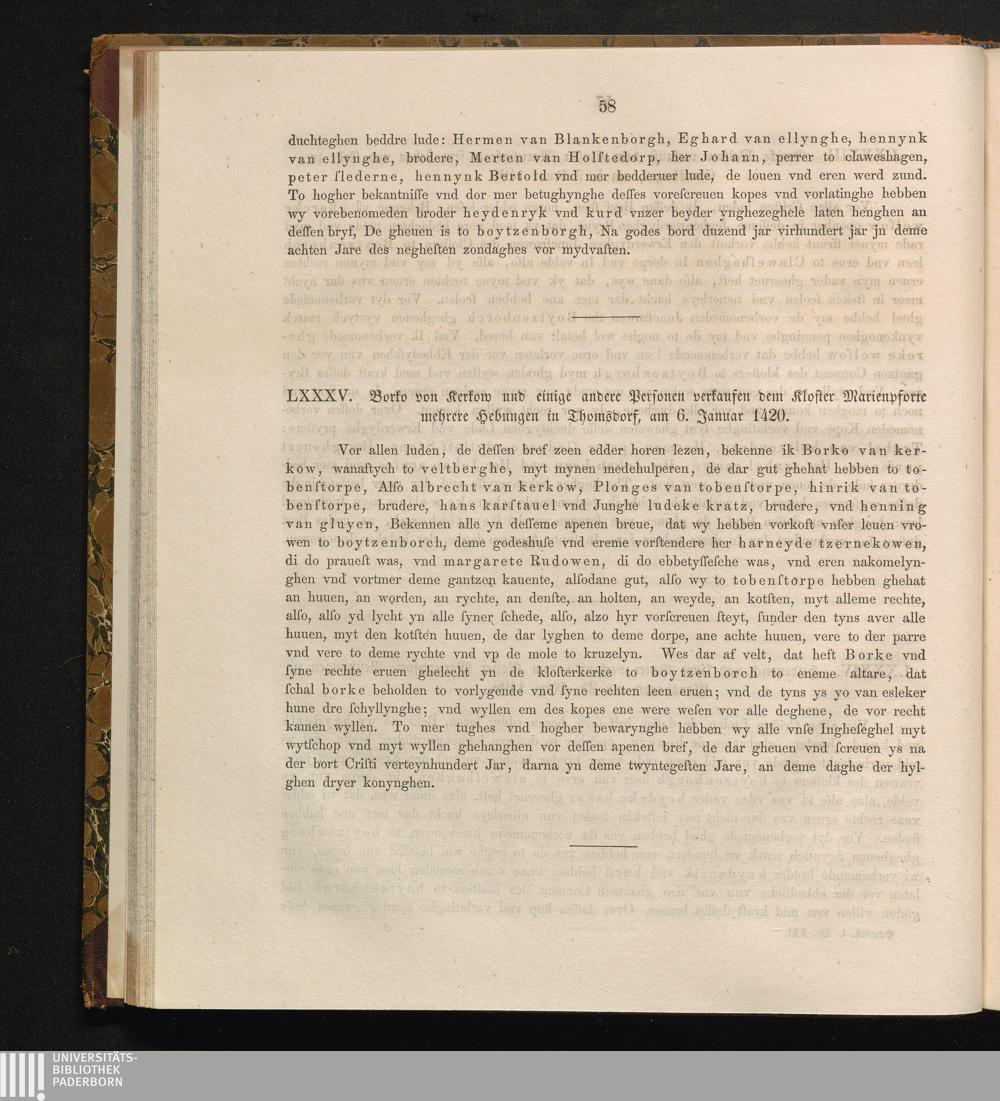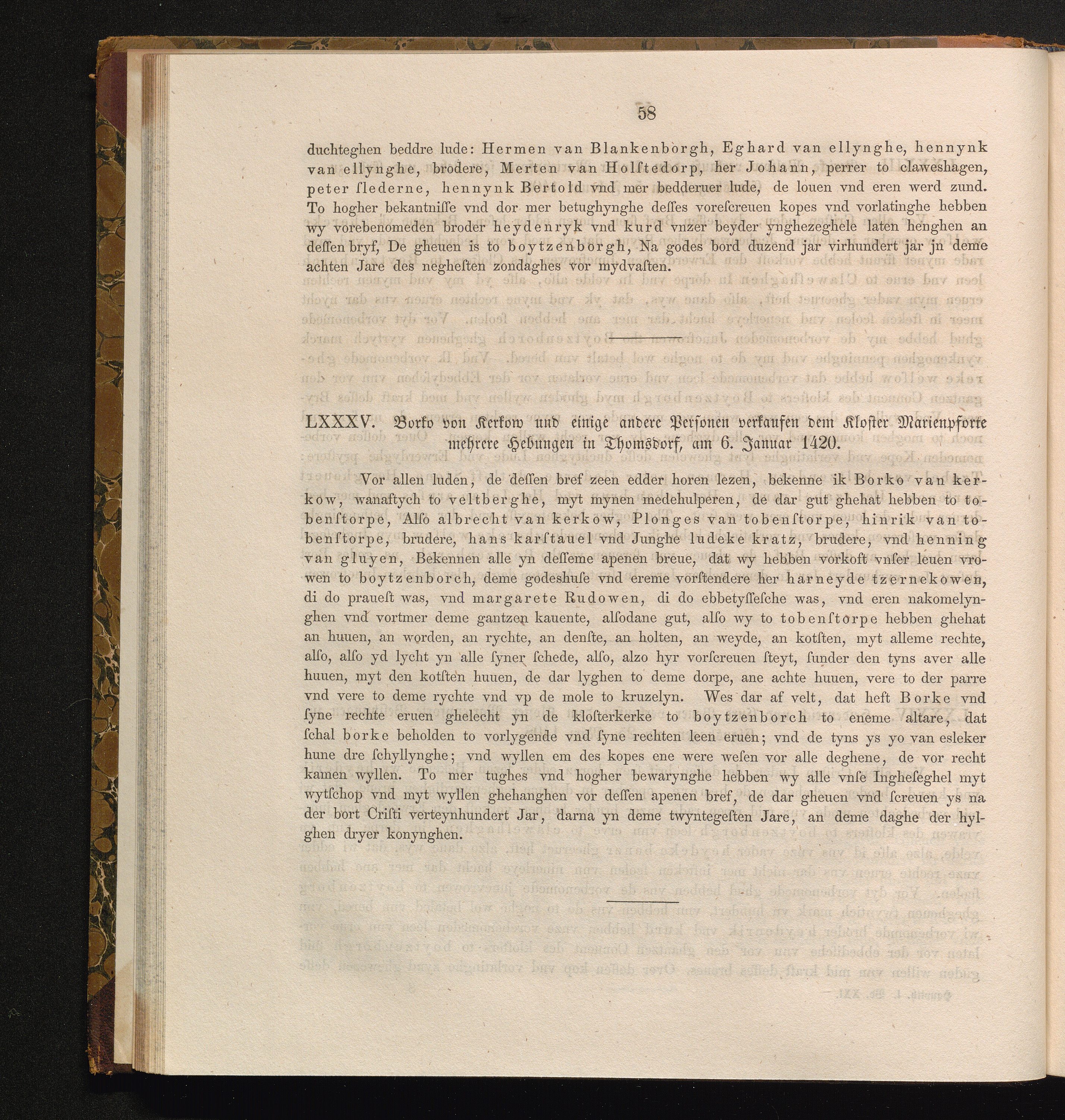 LXXXV. Borko von Kerkow und einige andere Personen verkaufen dem Kloster Marienpforte[...]