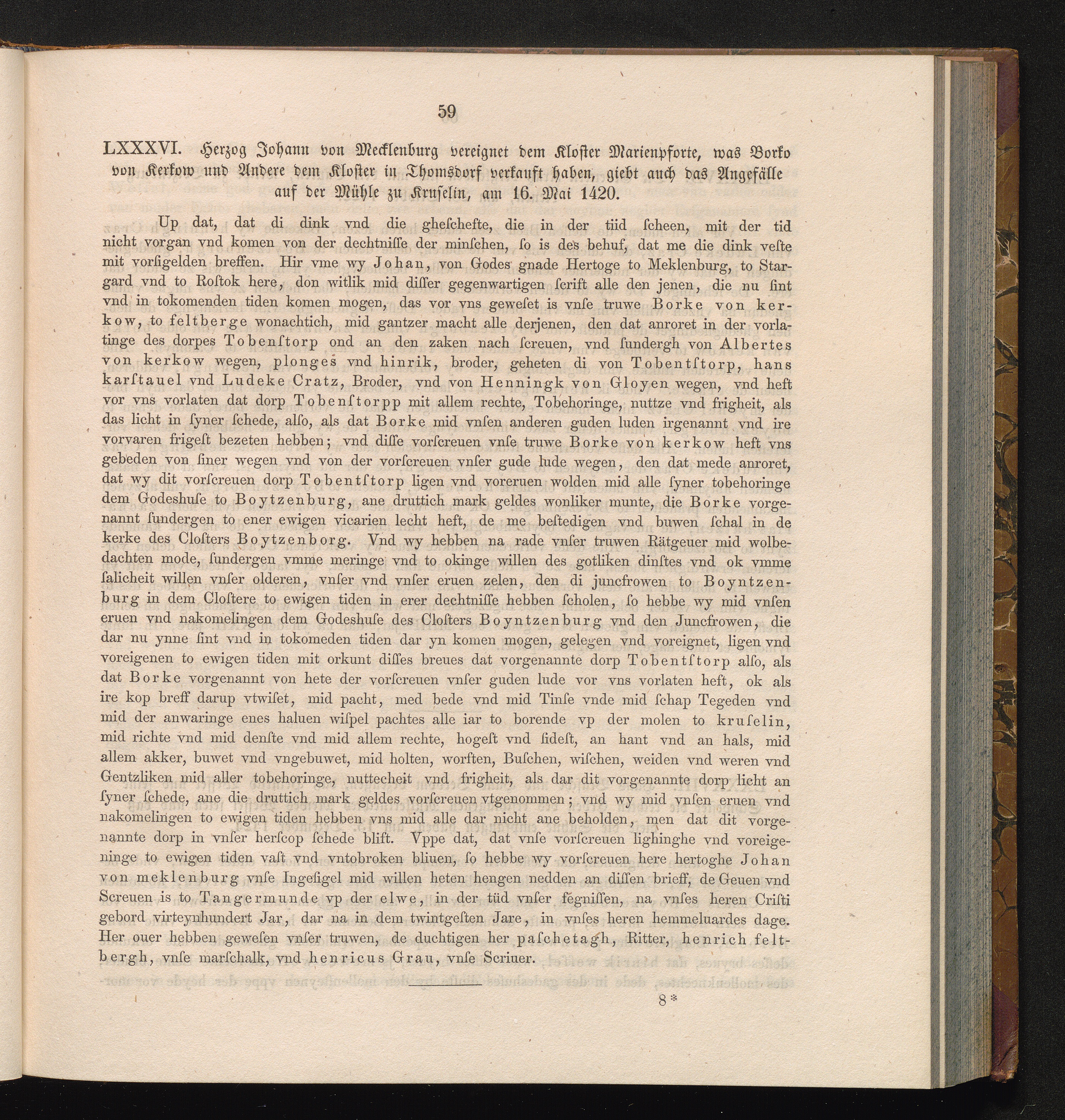 LXXXVI. Herzog Johann von Mecklenburg vereignet dem Kloster Marienpforte, was Borko[...]