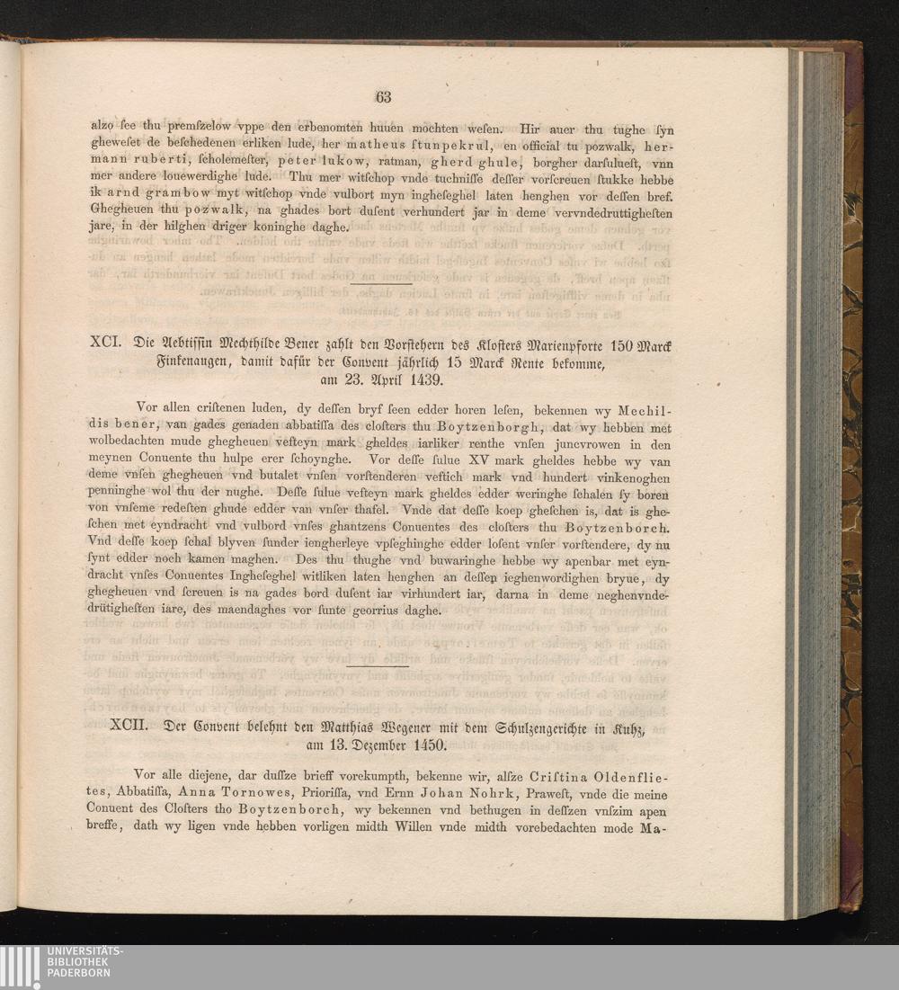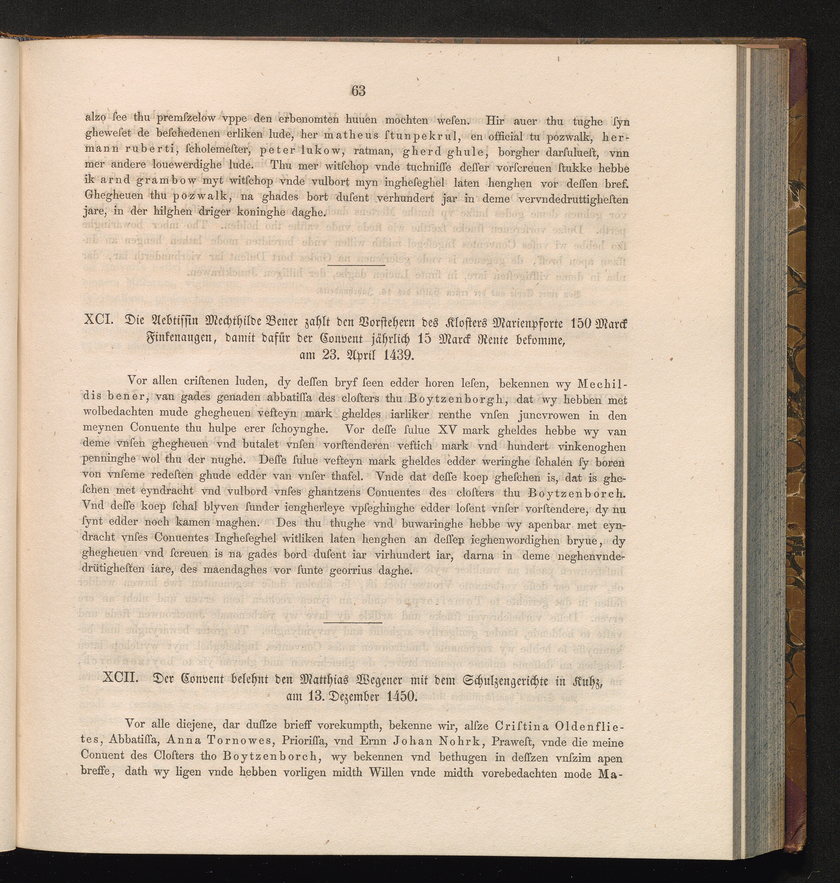 XCII. Der Convent belehnt den Matthias Wegener mit dem Schulzengerichte in Kuhz,[...]