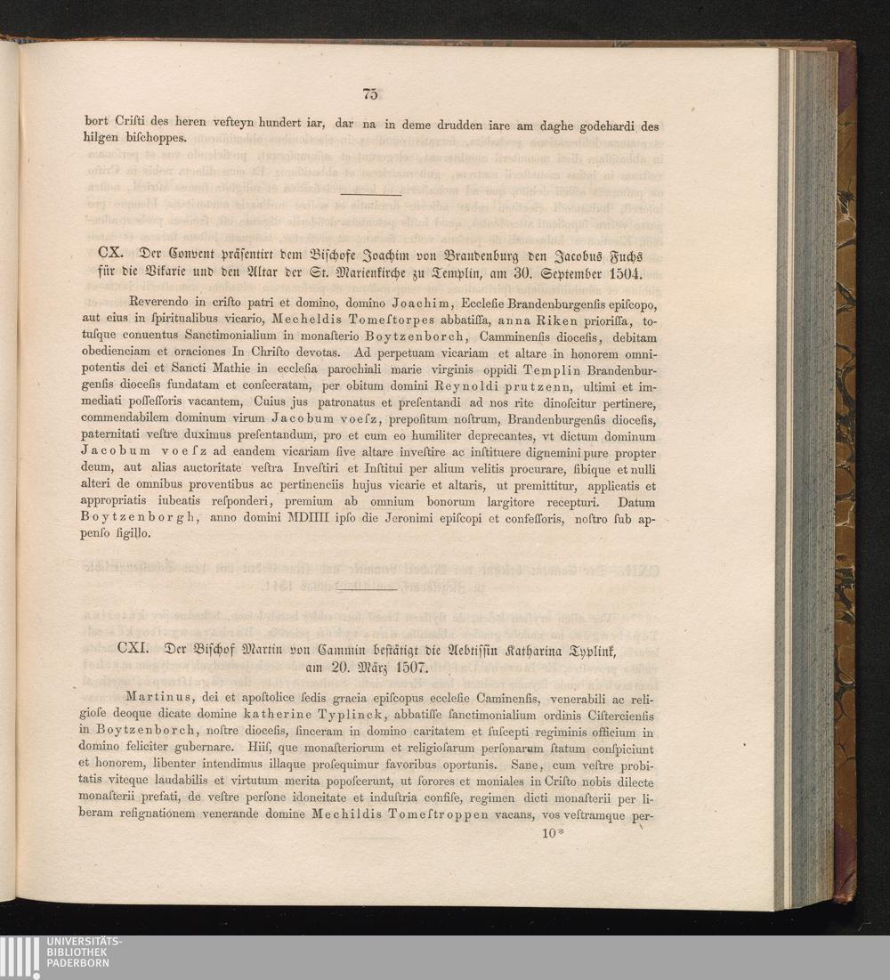 CXI. Der Bischof Martin von Cammin bestätigt die Aebtissin Katharina Typlink, am[...]