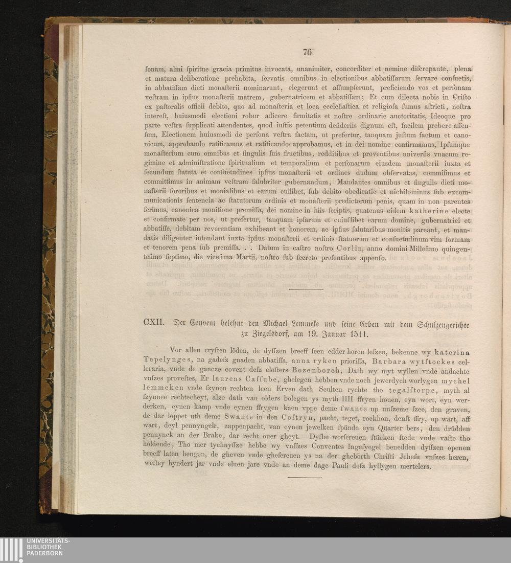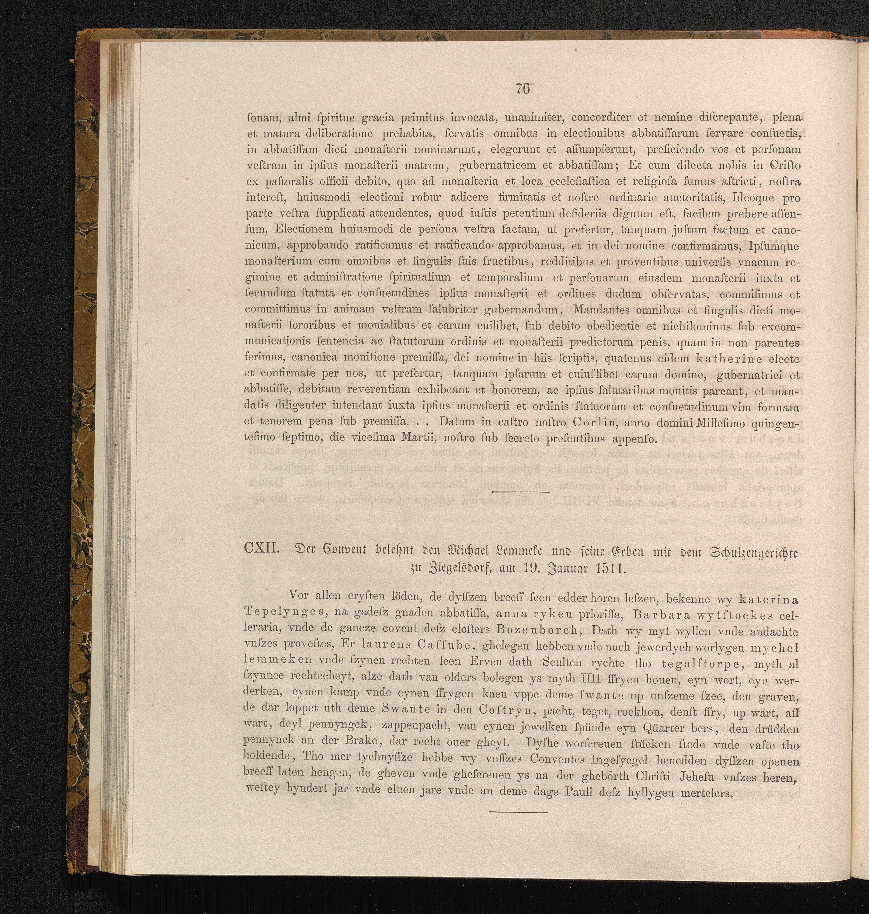 CXII. Der Convent belehnt den Michael Lemmeke und seine Erben mit dem Schulzengerichte[...]