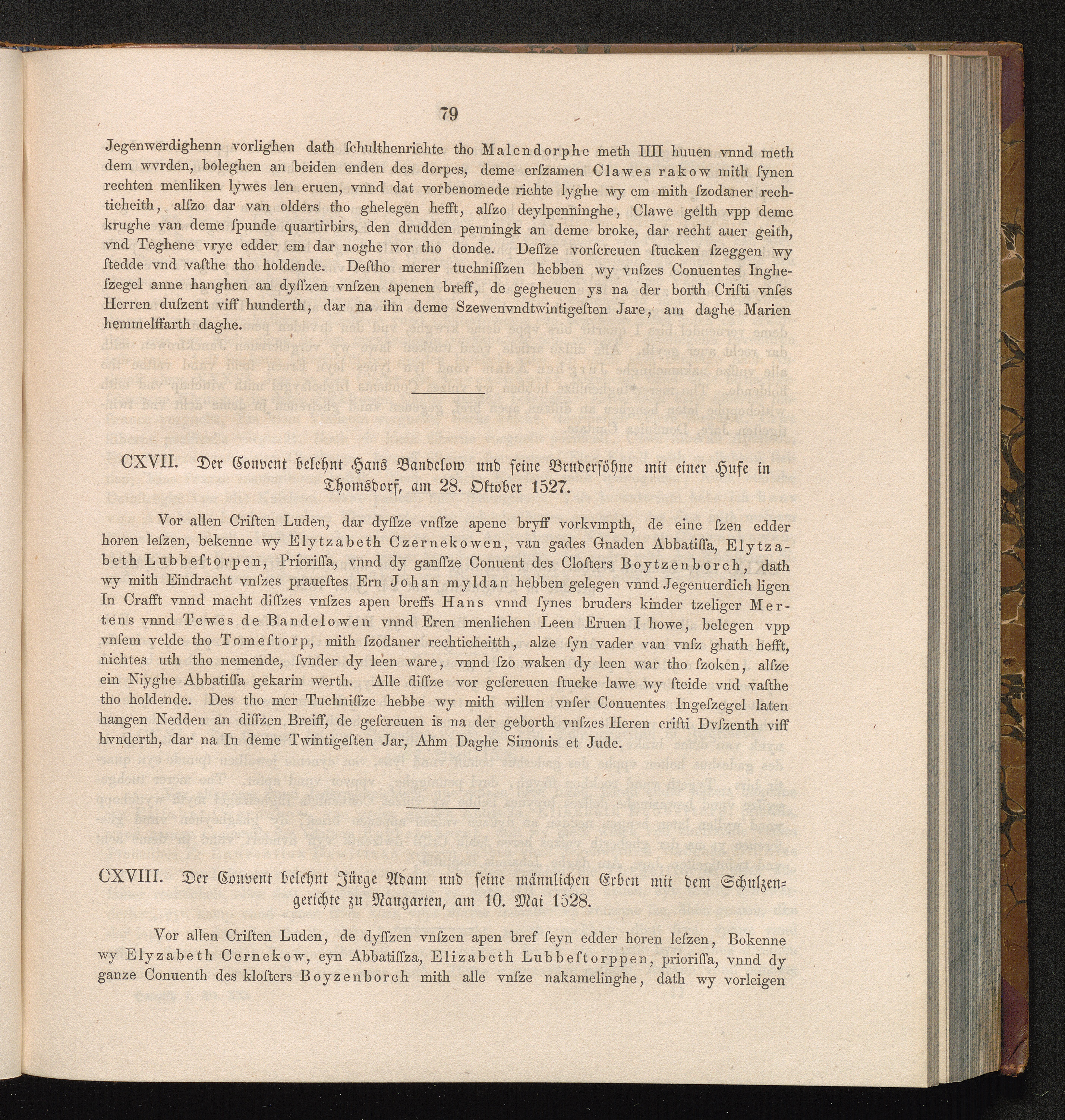 CXVIII. Der Convent belehnt Jürge Adam und seine männlichen Erben mit dem Schulzengerichte[...]