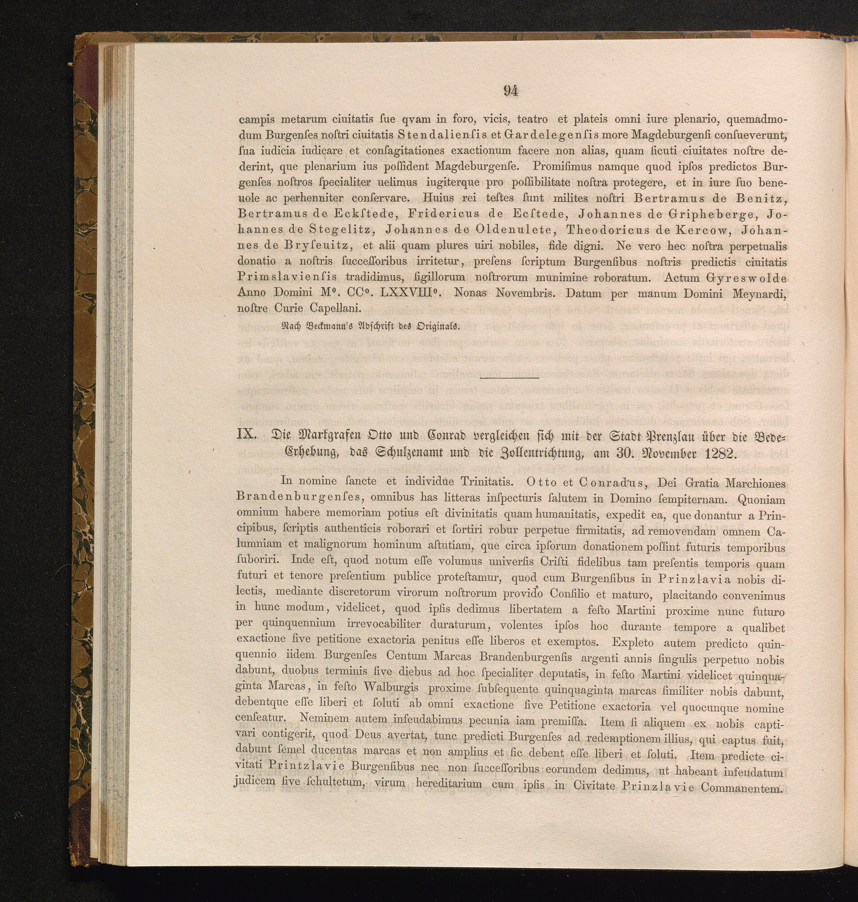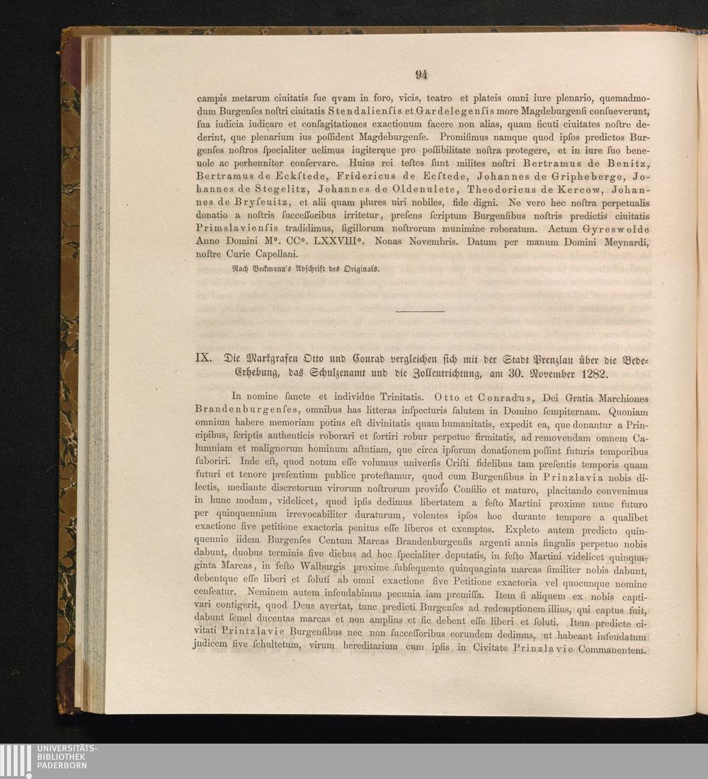 IX. Die Markgrafen Otto und Conrad vergleichen sich mit der Stadt Prenzlau über die[...]