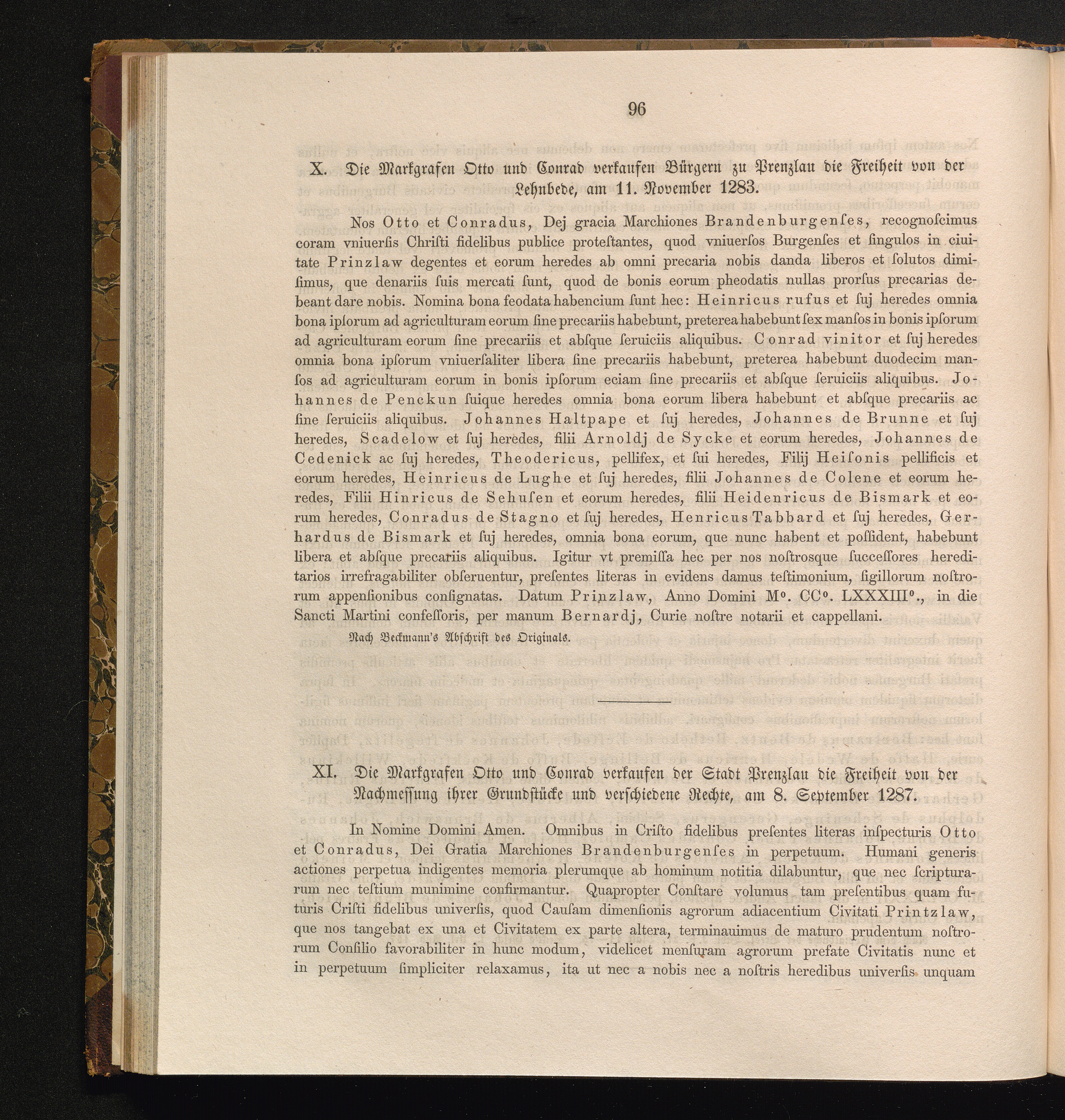 XI. Die Markgrafen Otto und Conrad verkaufen der Stadt Prenzlau die Freiheit von[...]