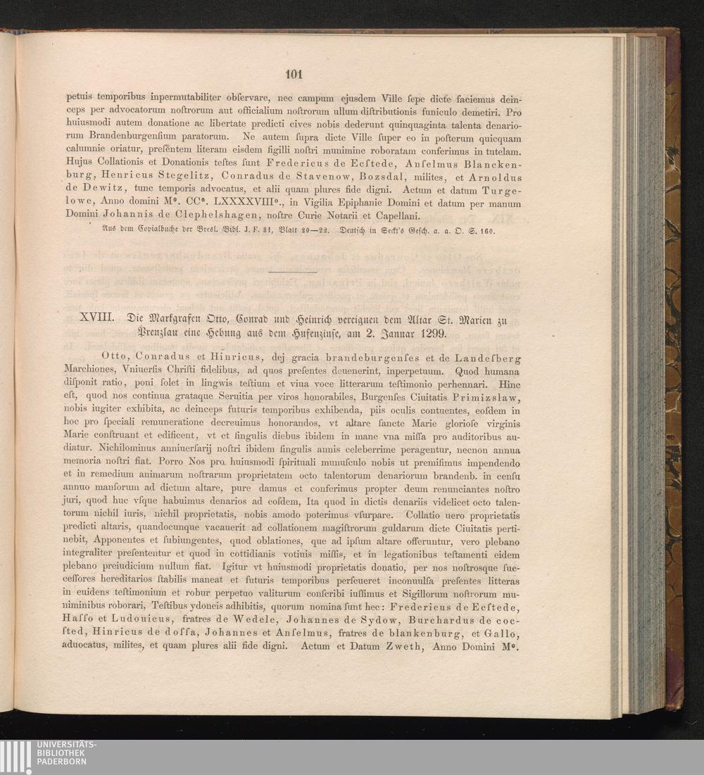 XVIII. Die Markgrafen Otto, Conrad und Heinrich vereignen dem Altar St. Marien zu[...]