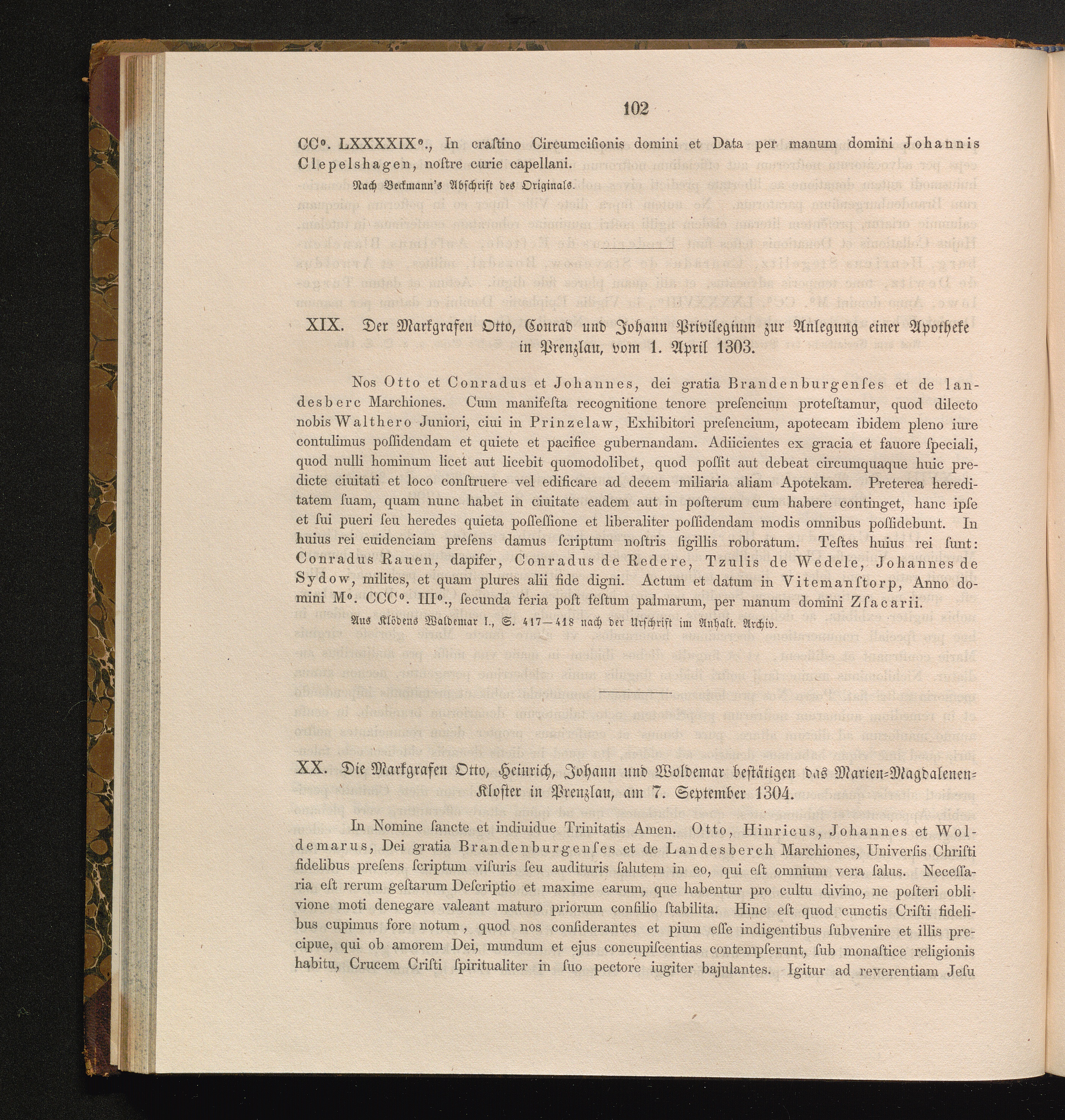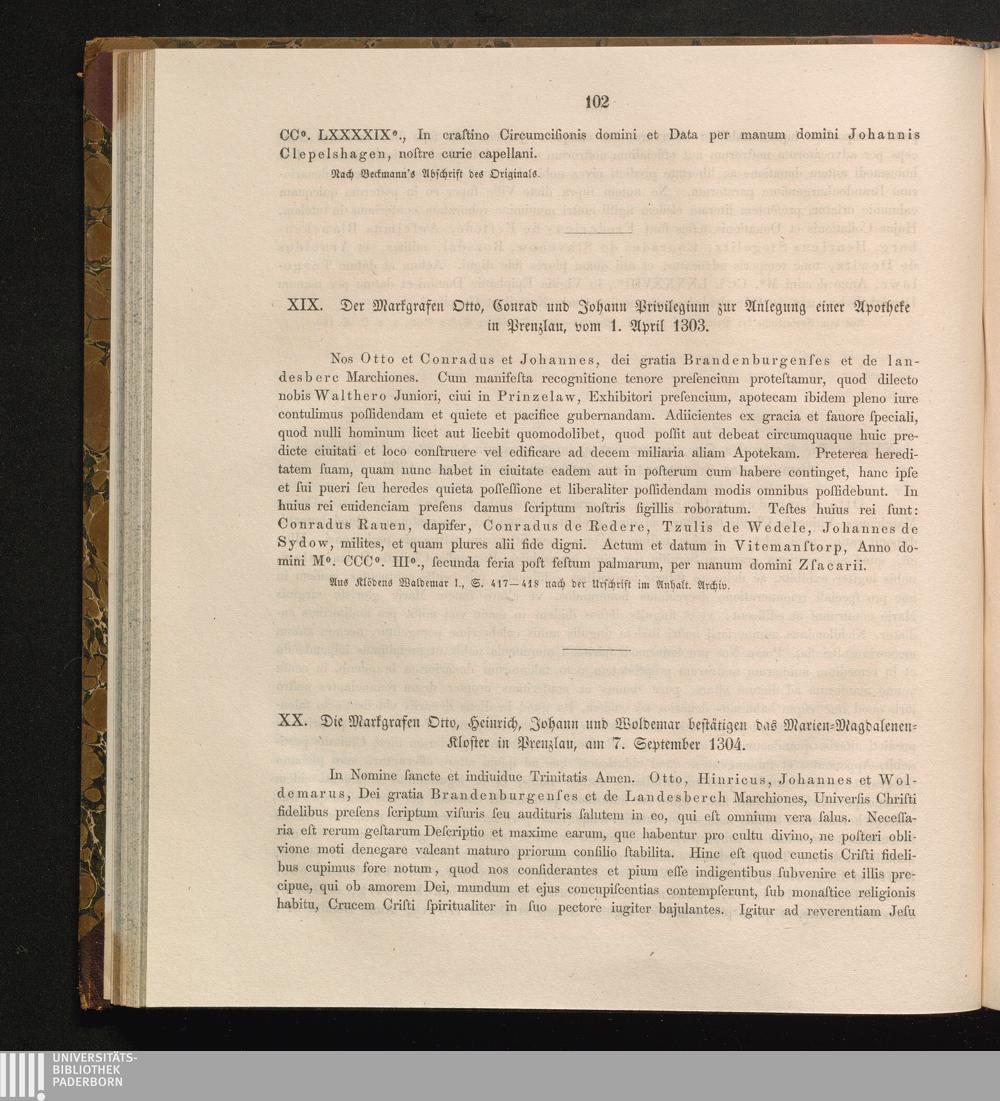 XX. Die Markgrafen Otto, Heinrich, Johann und Woldemar bestätigen das Marien-Magdalenen-Kloster[...]