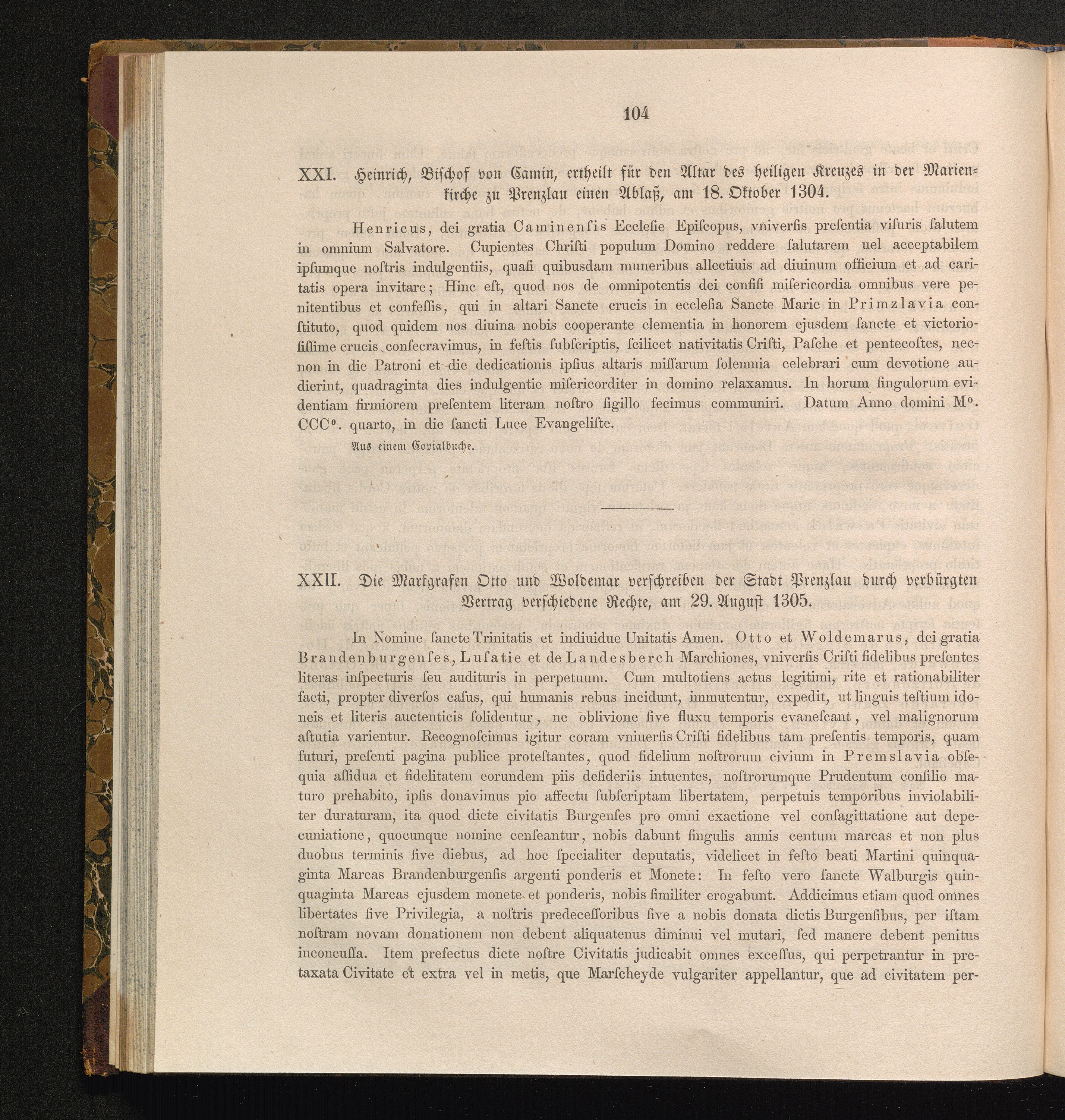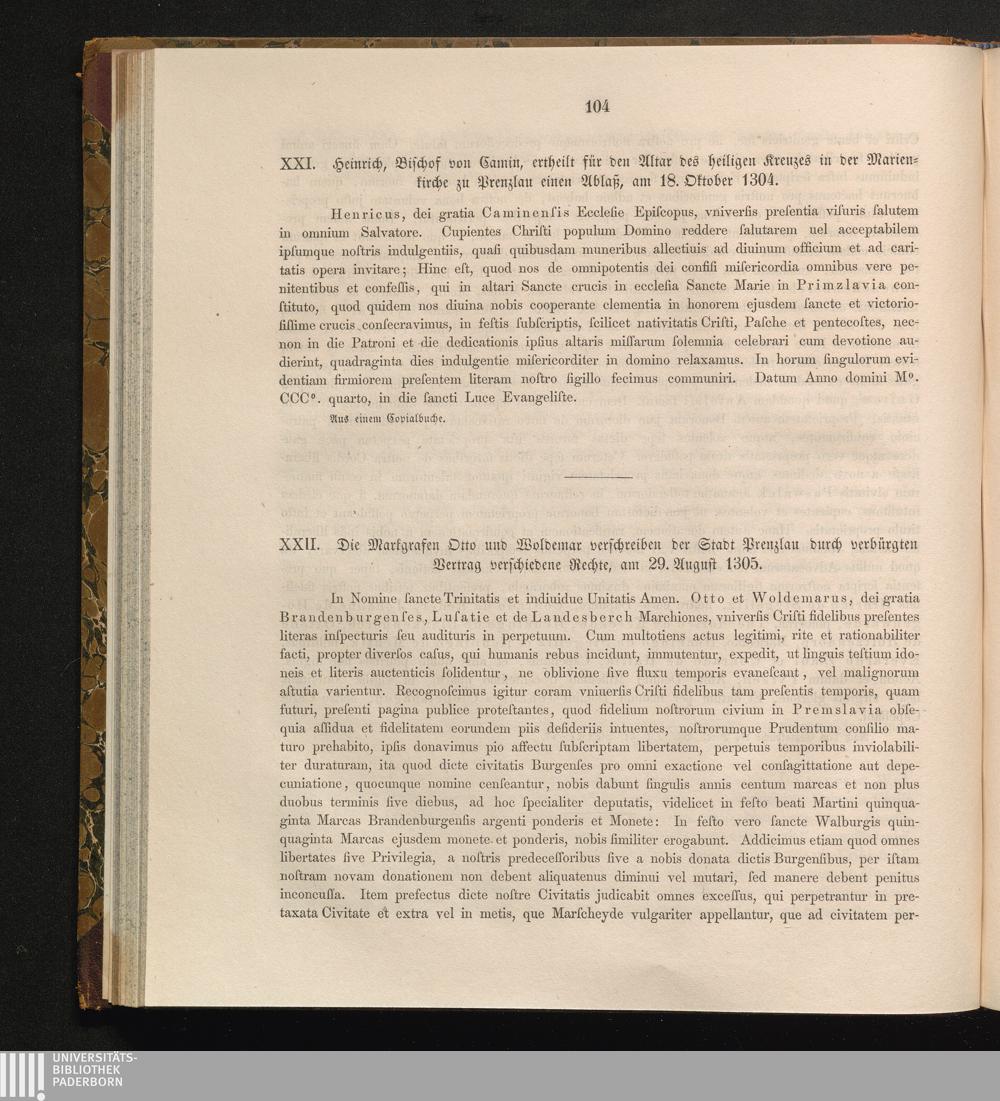 XXII. Die Markgrafen Otto und Woldemar verschreiben der Stadt Prenzlau durch verbürgten[...]