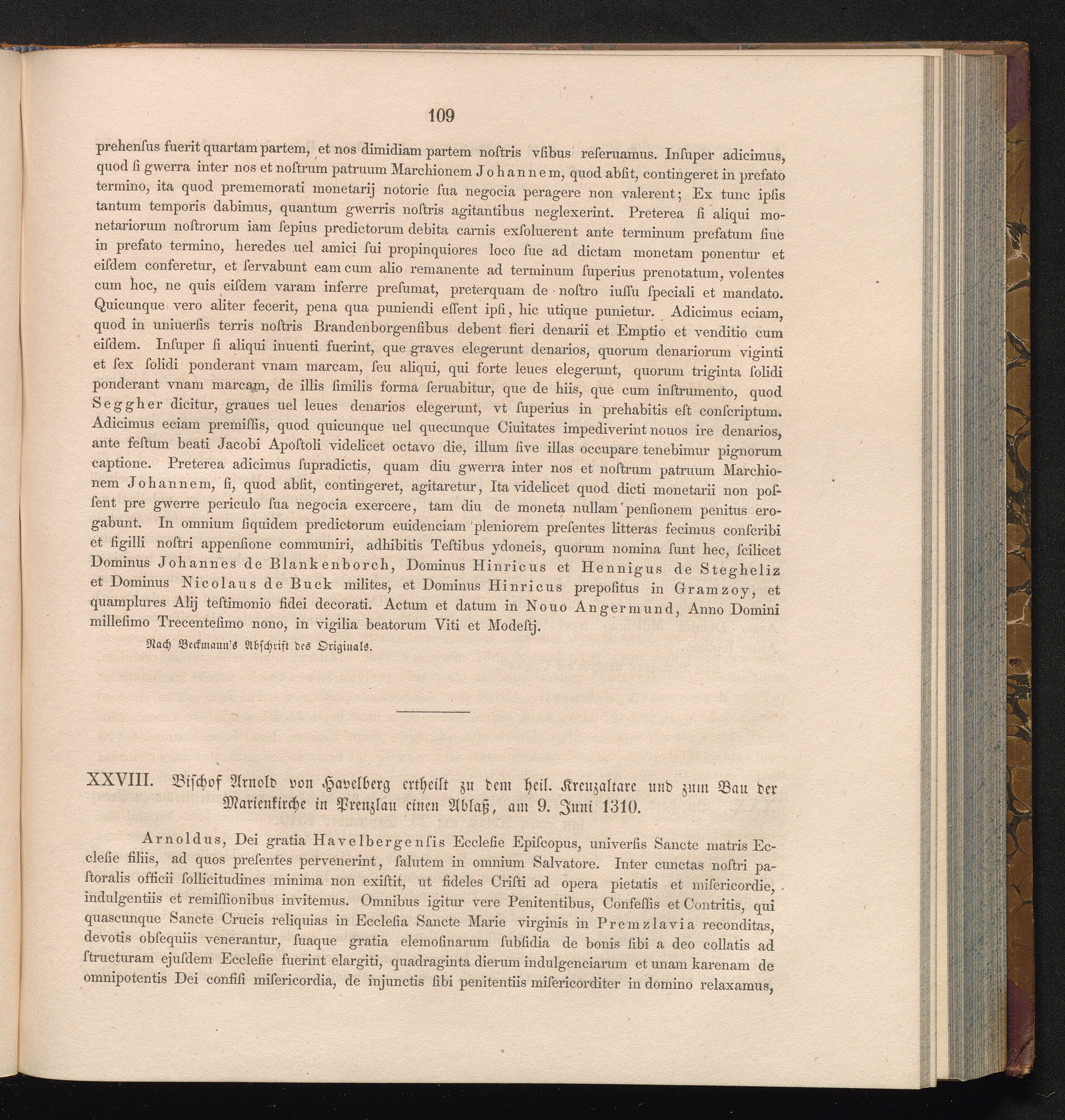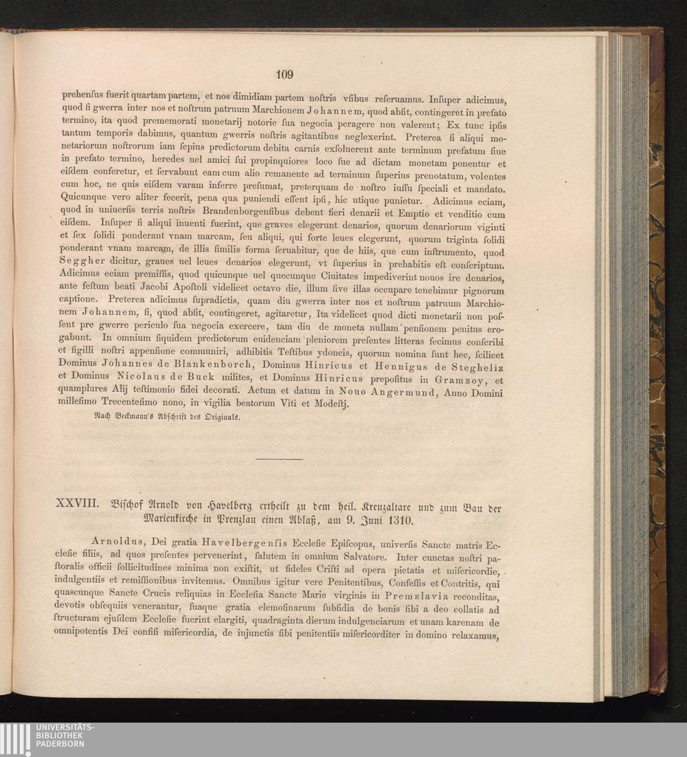 XXVIII. Bischof Arnold von Havelberg ertheilt zu dem heil. Kreuzaltare und zum Bau[...]