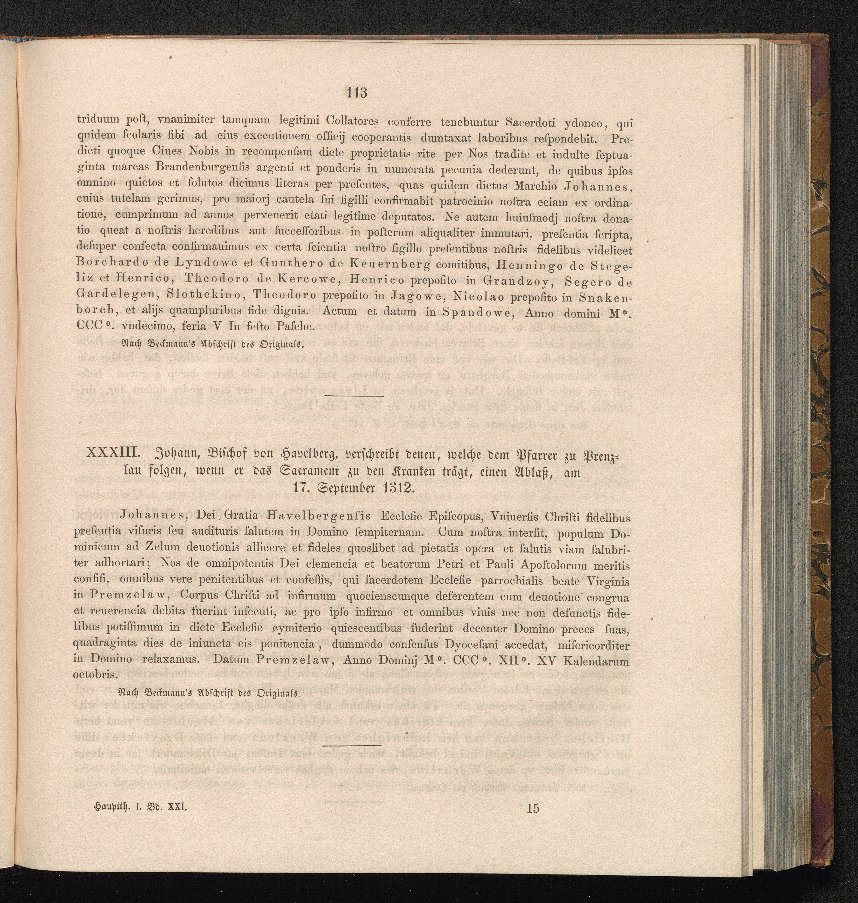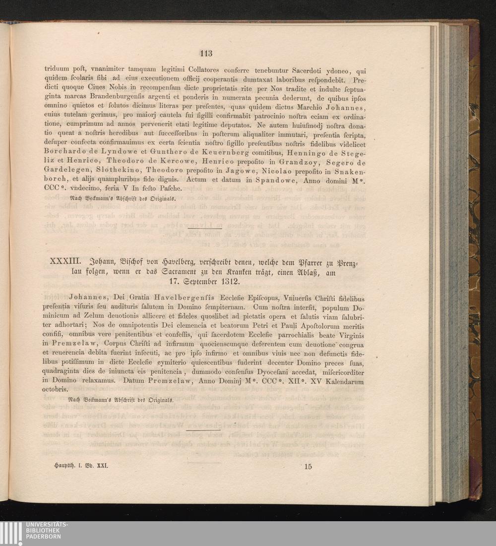 XXXIII. Johann, Bischof von Havelberg, verschreibt denen, welche dem Pfarrer zu Prenzlau[...]