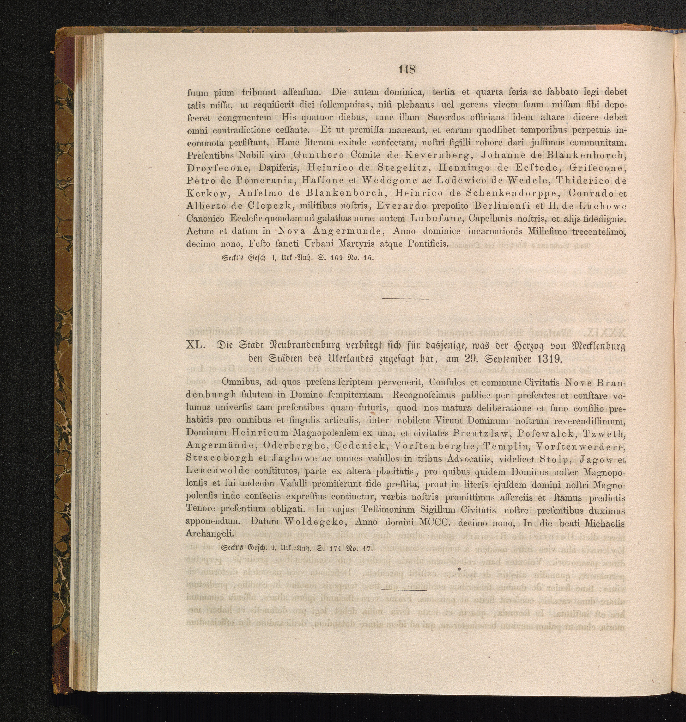 XL. Die Stadt Neubrandenburg verbürgt sich für dasjenige, was der Herzog von Mecklenburg[...]