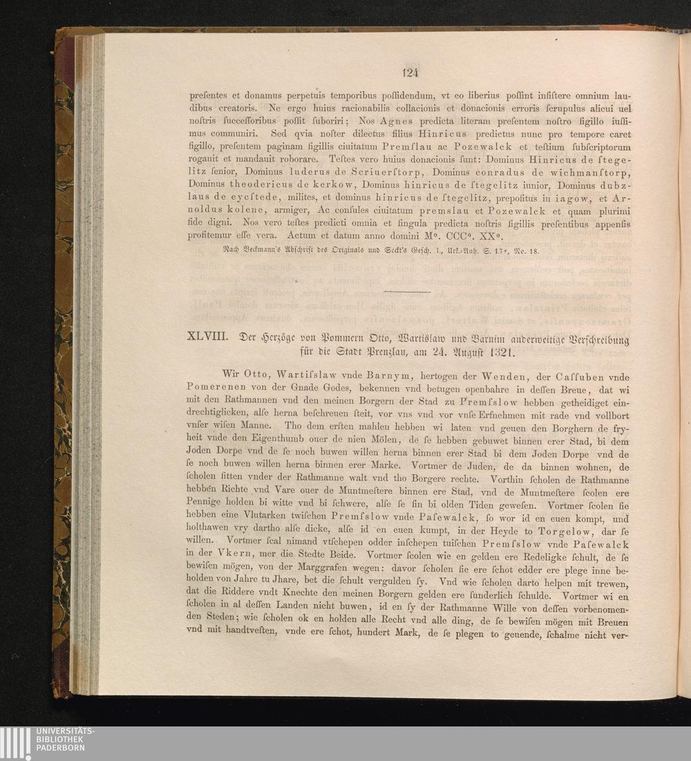 XLVIII. Der Herzöge von Pommern Otto, Wartislaw und Barnim anderweitige Verschreibung[...]
