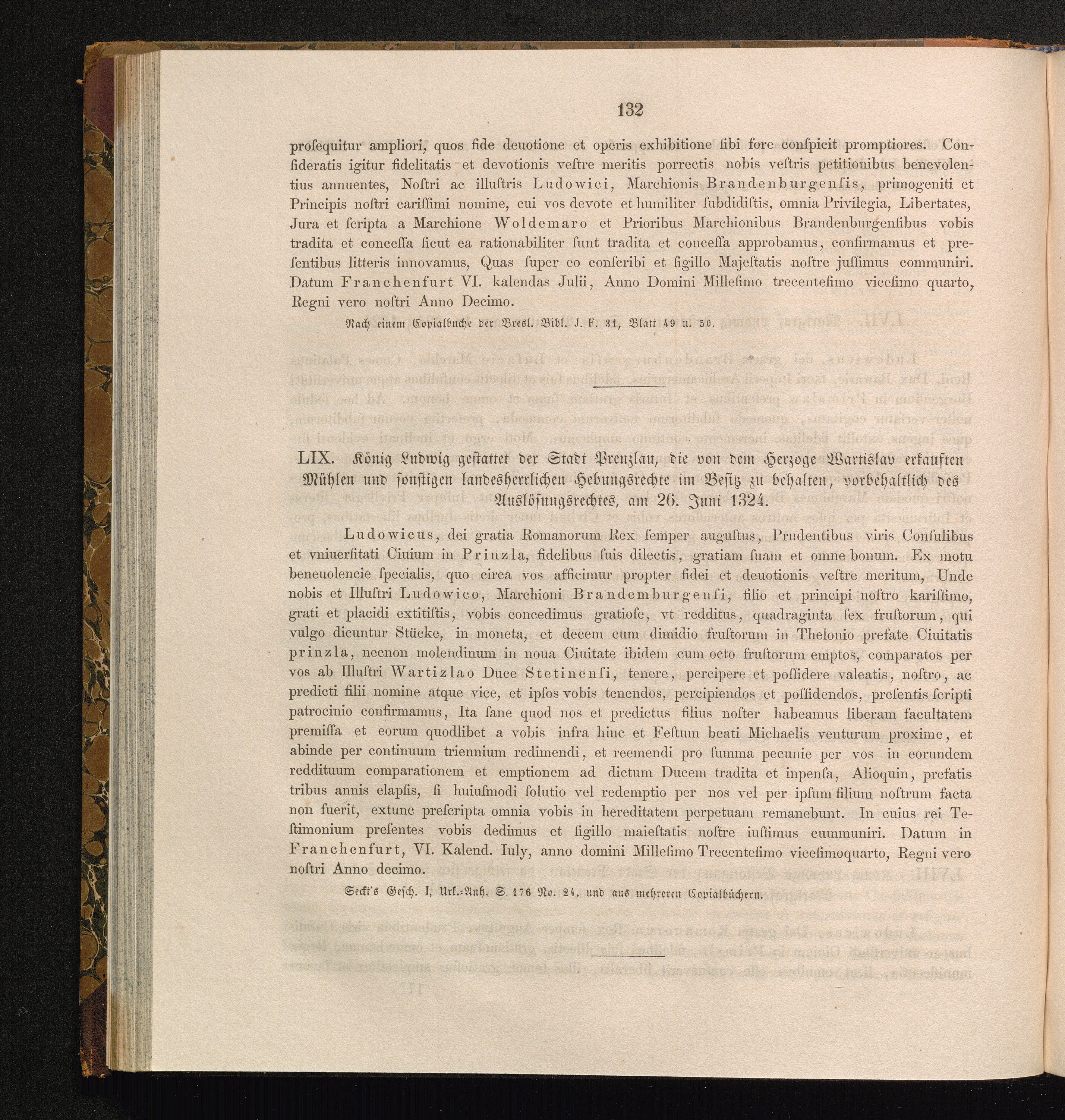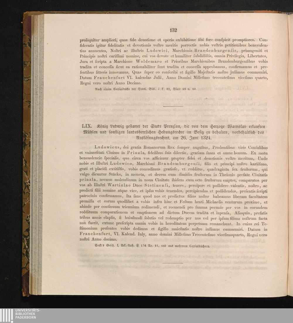 LIX. König Ludwig gestattet der Stadt Prenzlau, die von dem Herzoge Wartislav erkauften[...]