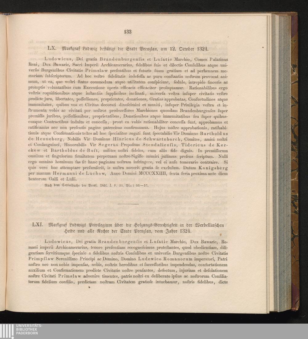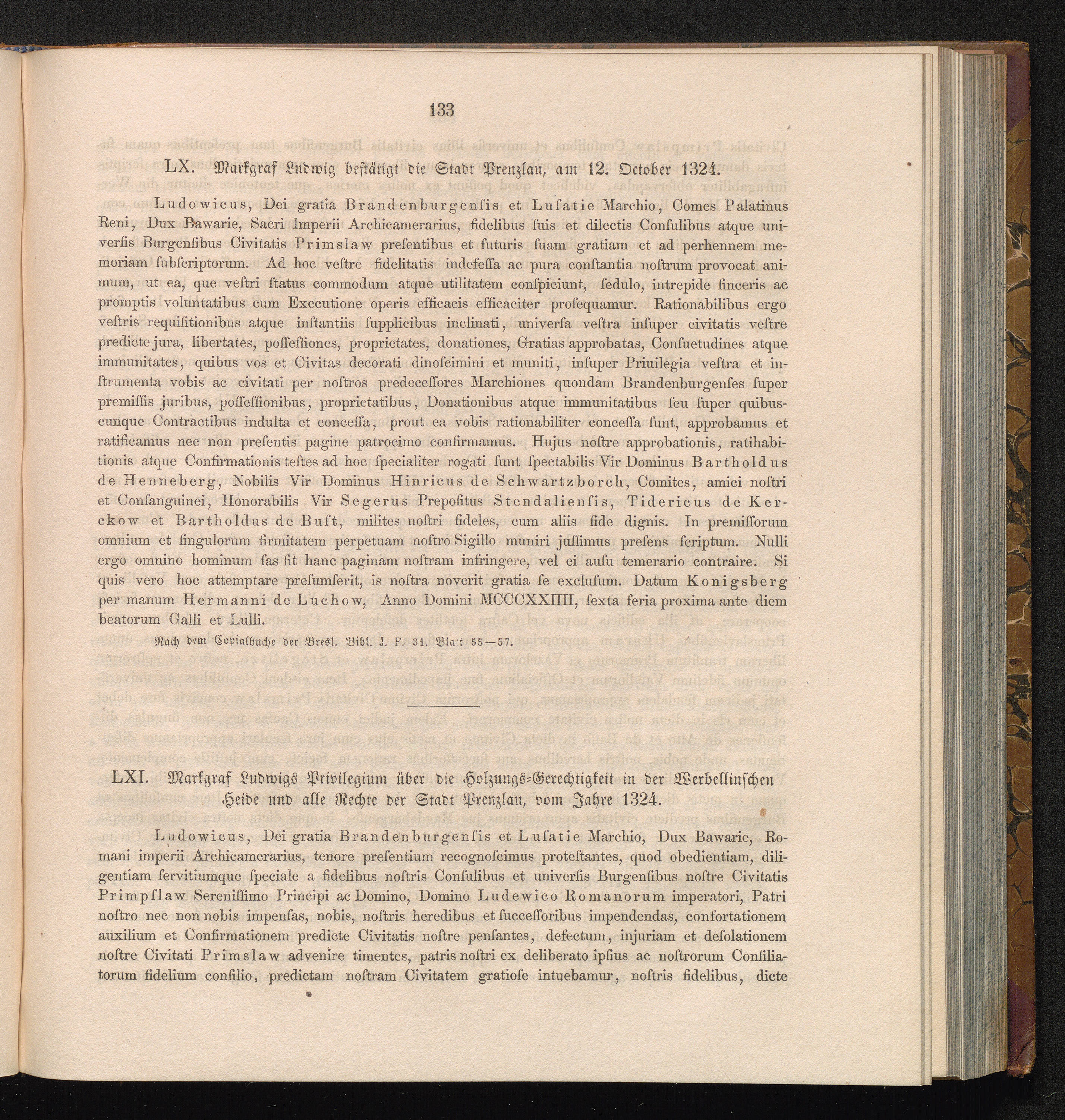 LXI. Markgraf Ludwigs Privilegium über die Holzungs-Gerechtigkeit in der Werbellinschen[...]