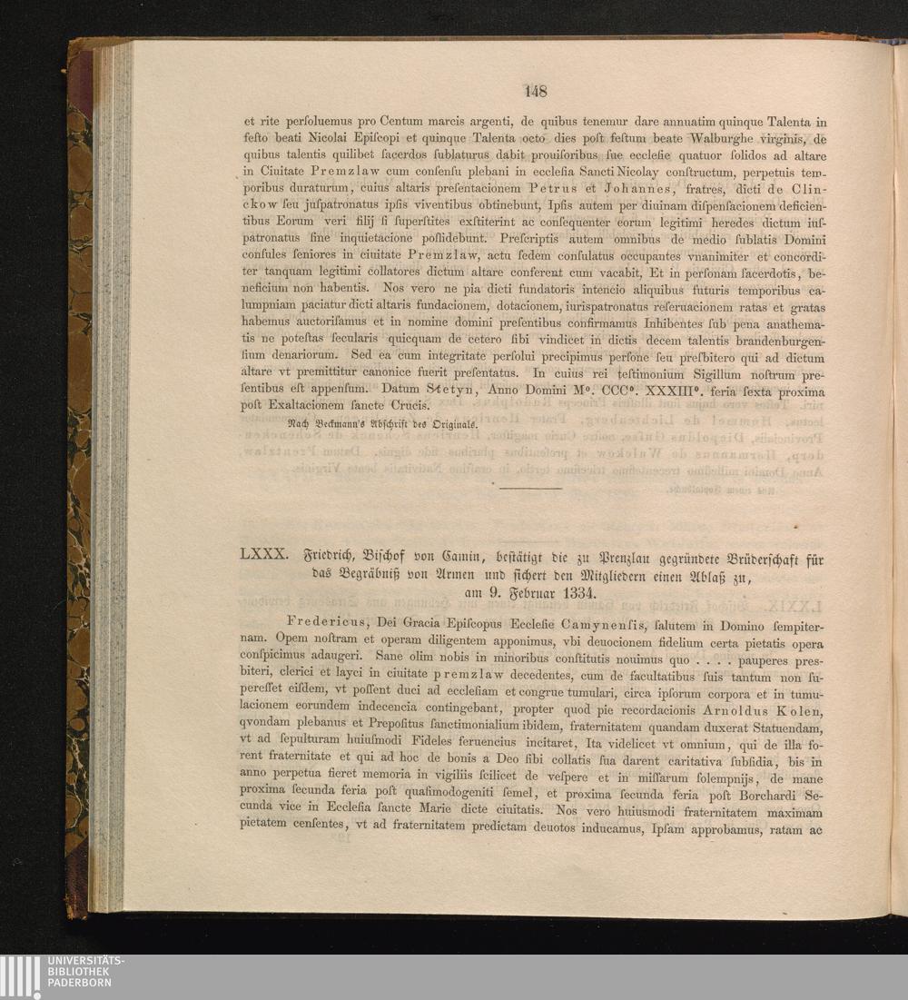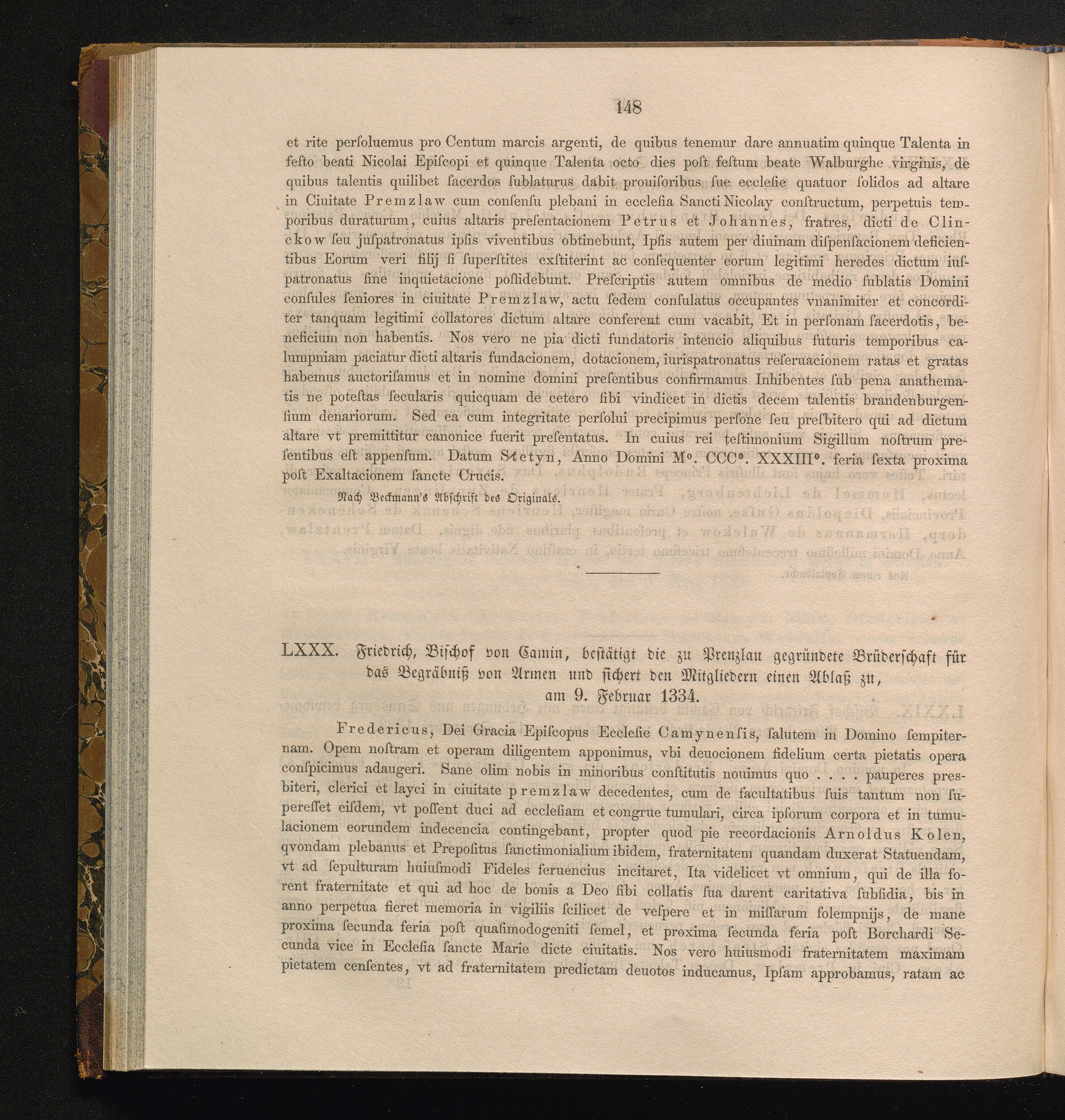 LXXX. Friedrich, Bischof von Camin, bestätigt die zu Prenzlau gegründete Brüderschaft[...]