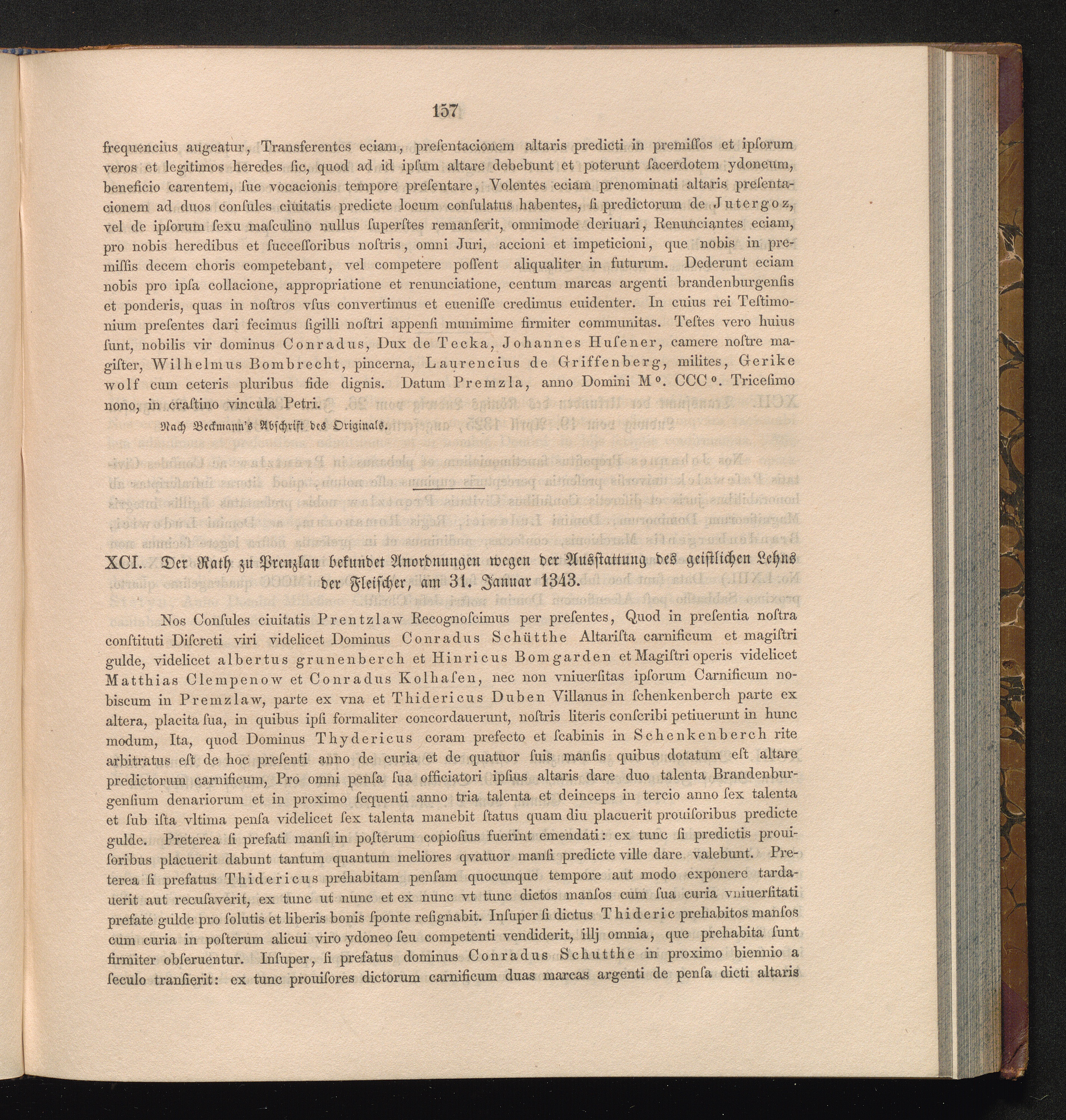 XCI. Der Rath zu Prenzlau bekundet Anordnungen wegen der Ausstattung des geistlichen[...]