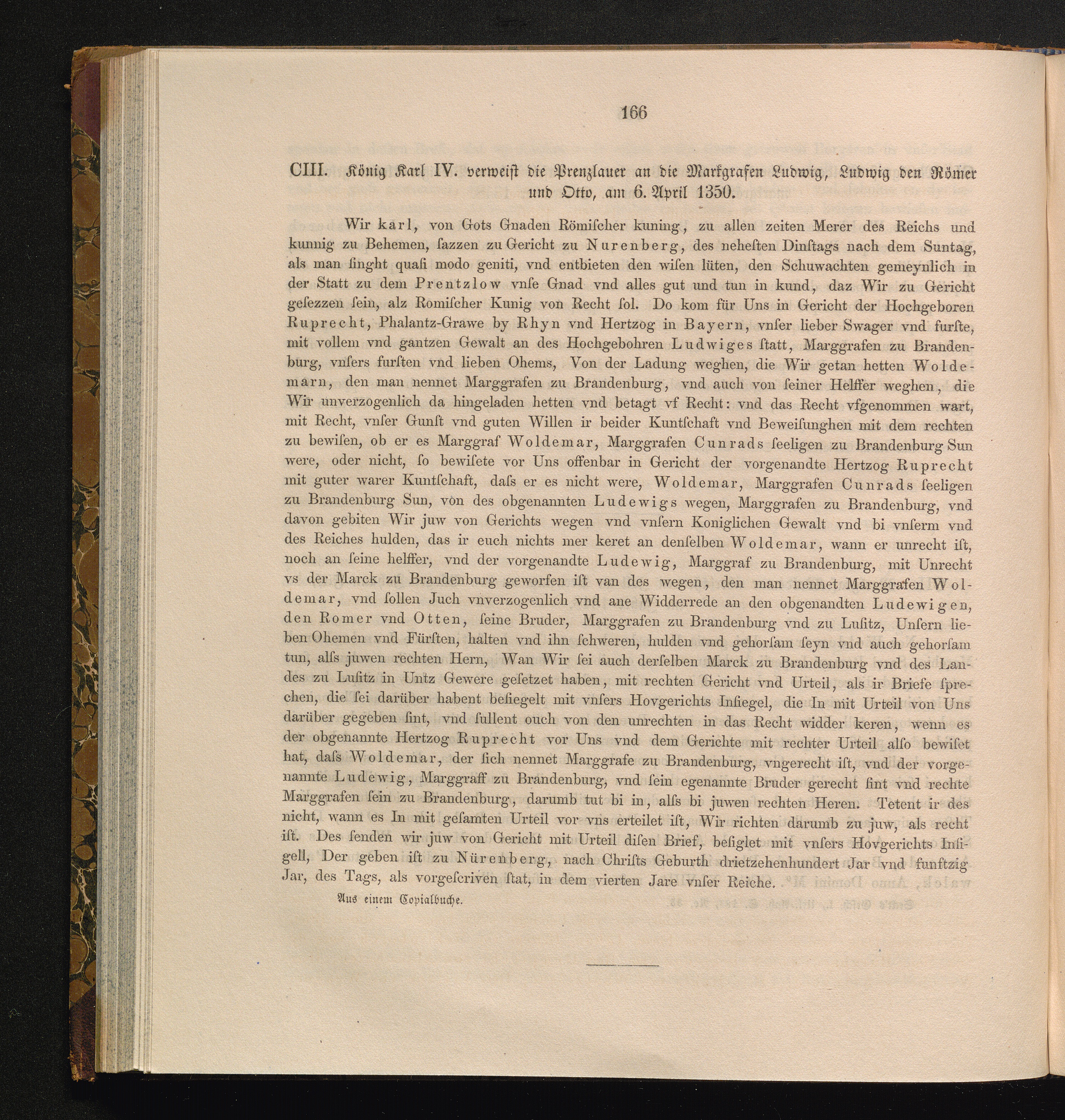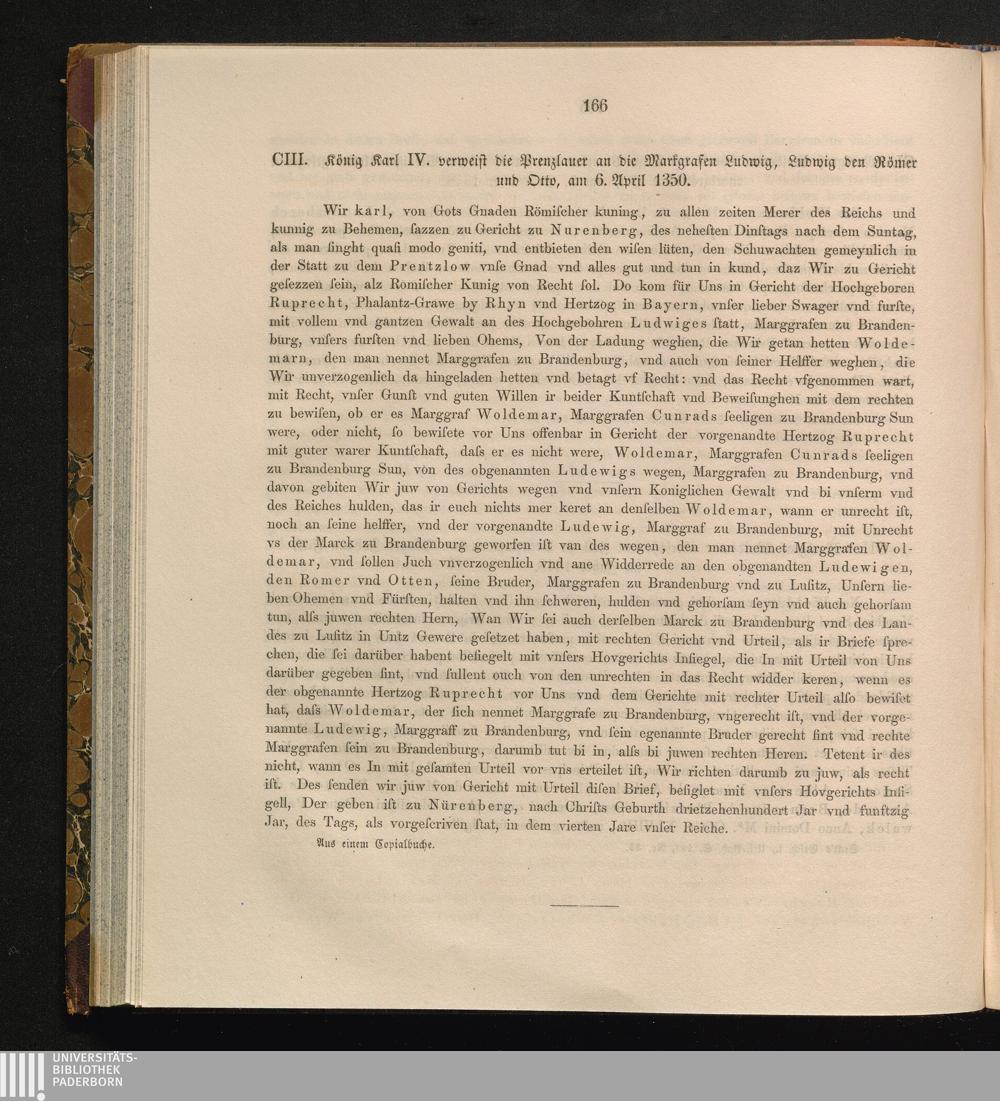CIII. König Karl IV. verweist die Prenzlauer an die Markgrafen Ludwig, Ludwig den[...]
