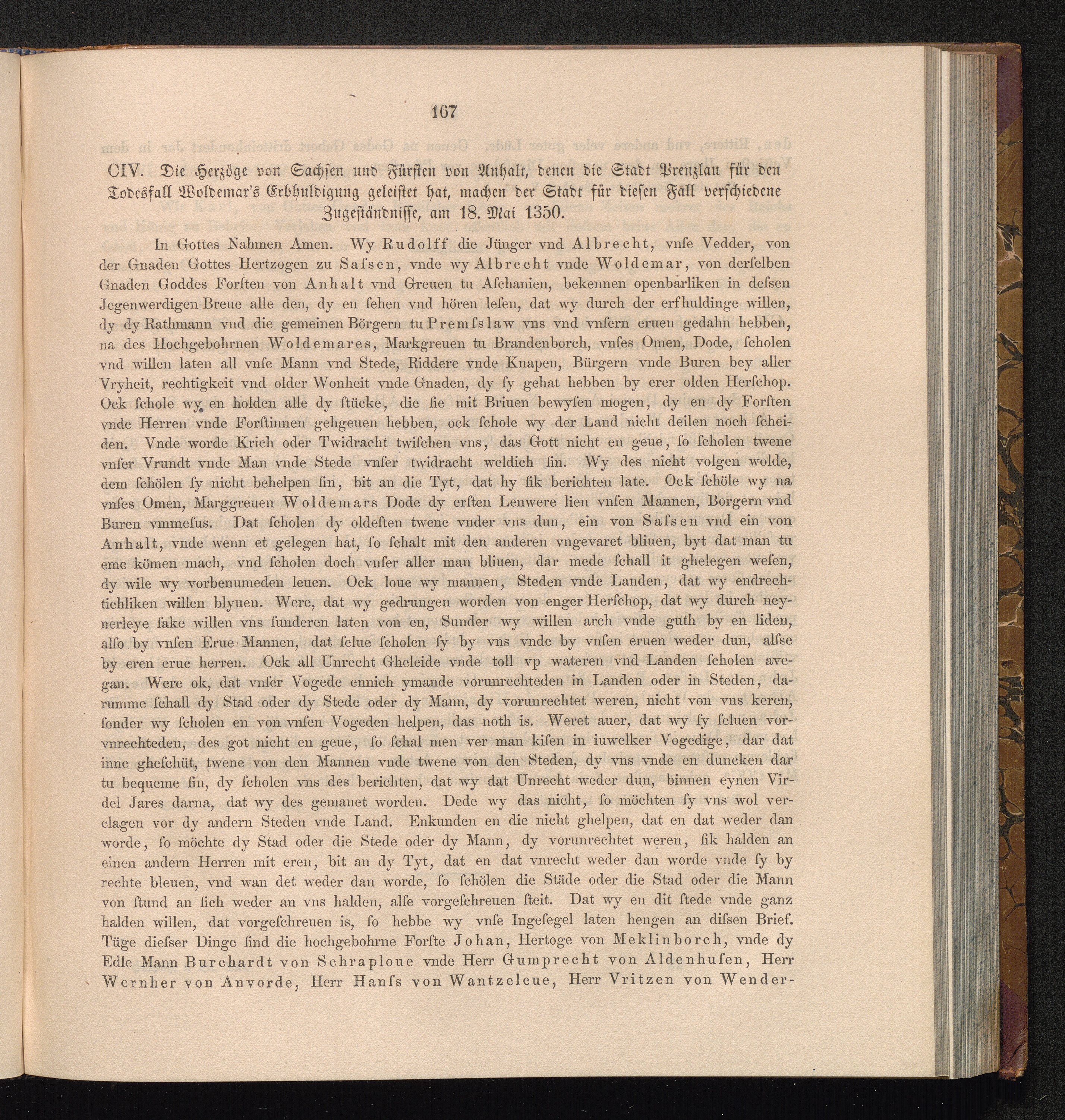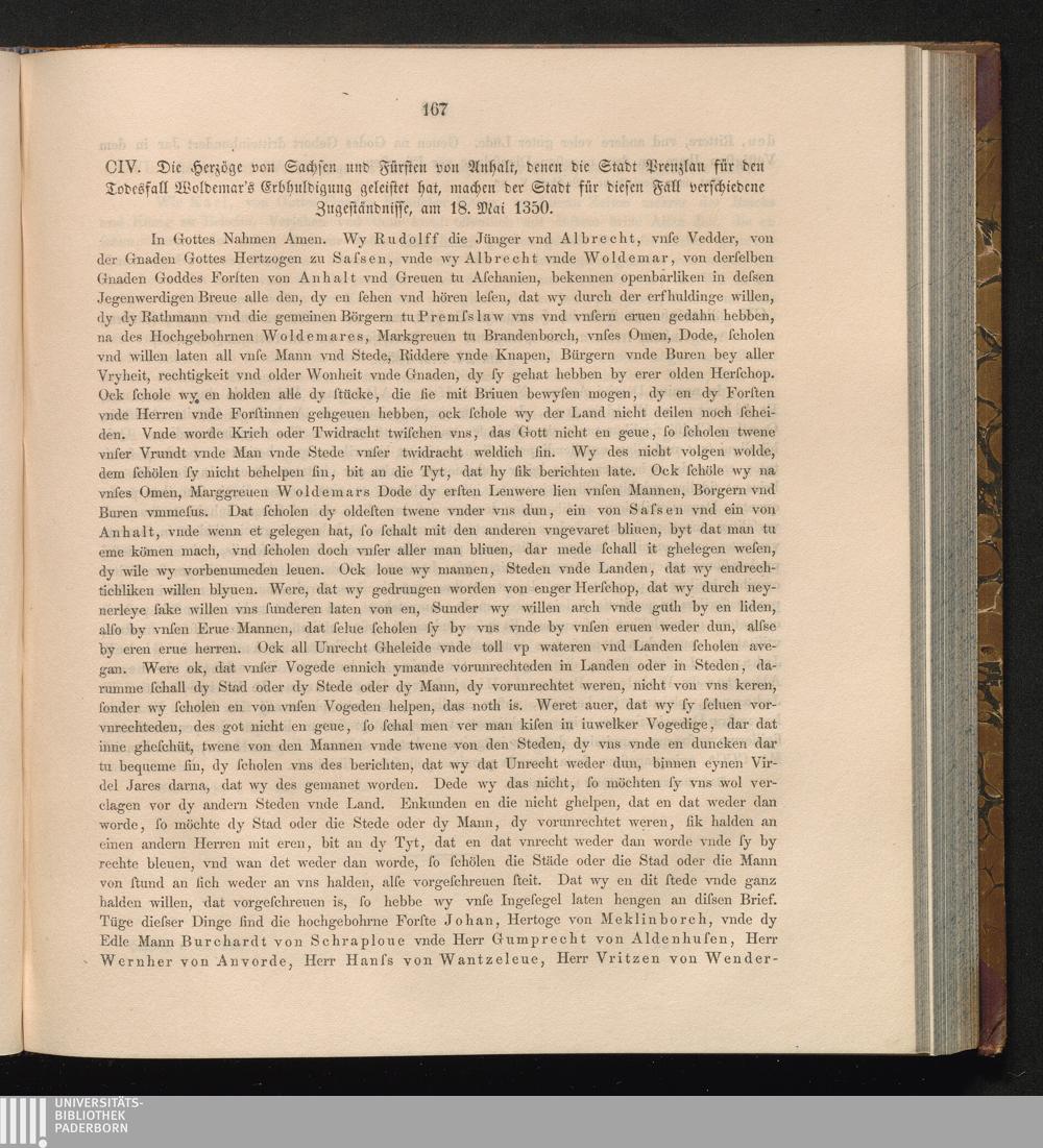CIV. Die Herzöge von Sachsen und Fürsten von Anhalt, denen die Stadt Prenzlau für[...]