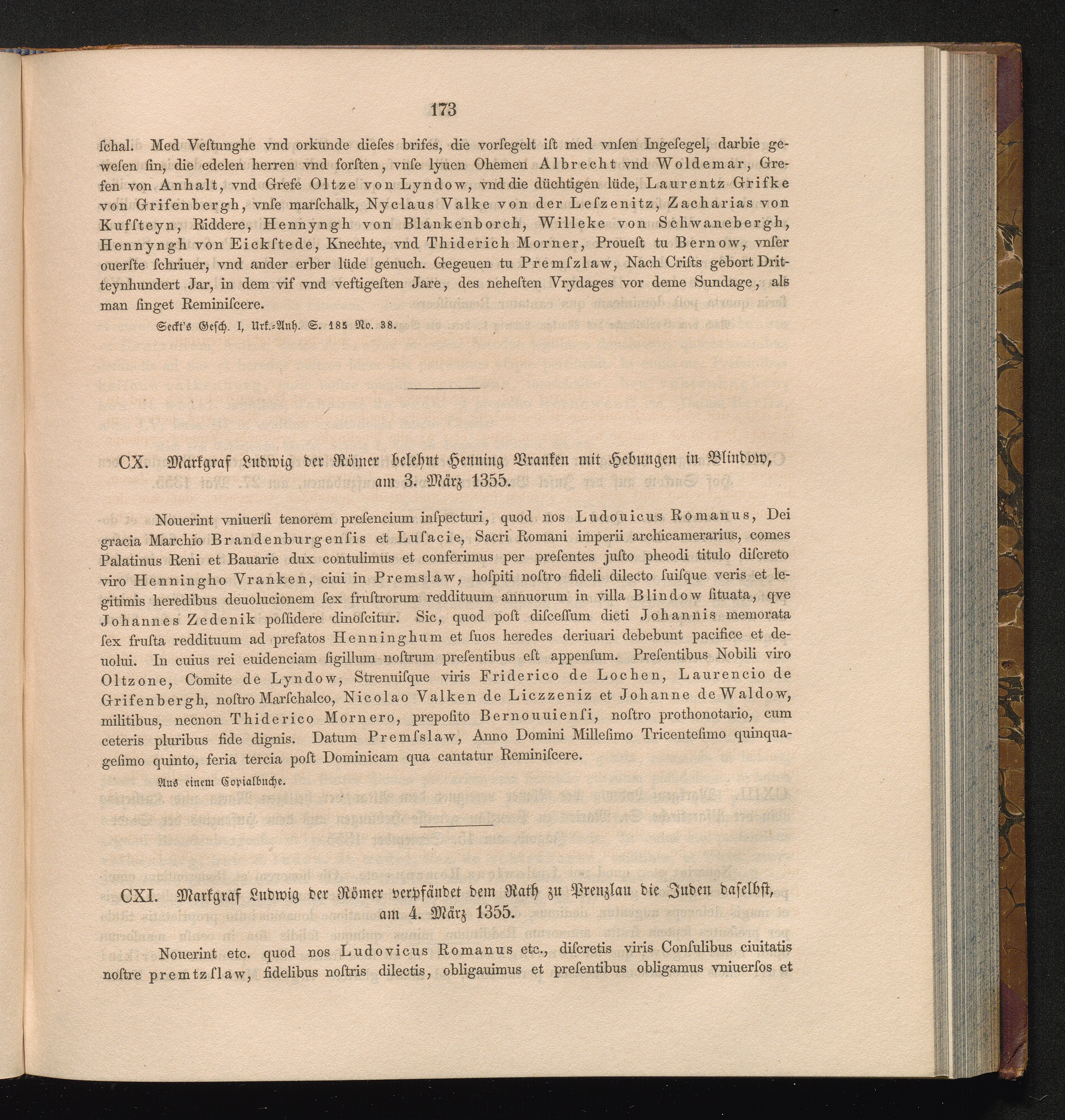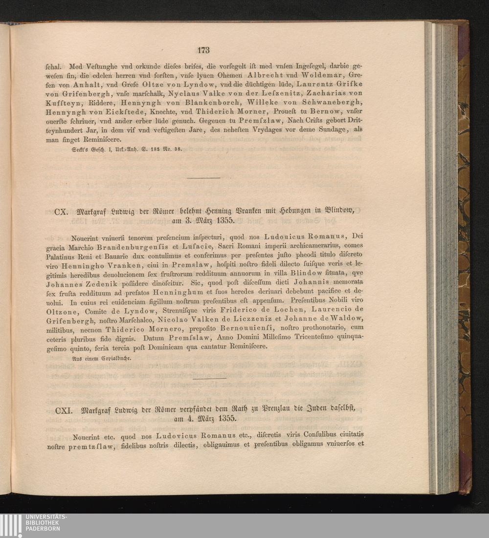 CXI. Markgraf Ludwig der Römer verpfändet dem Rath zu Prenzlau die Juden daselbst,[...]