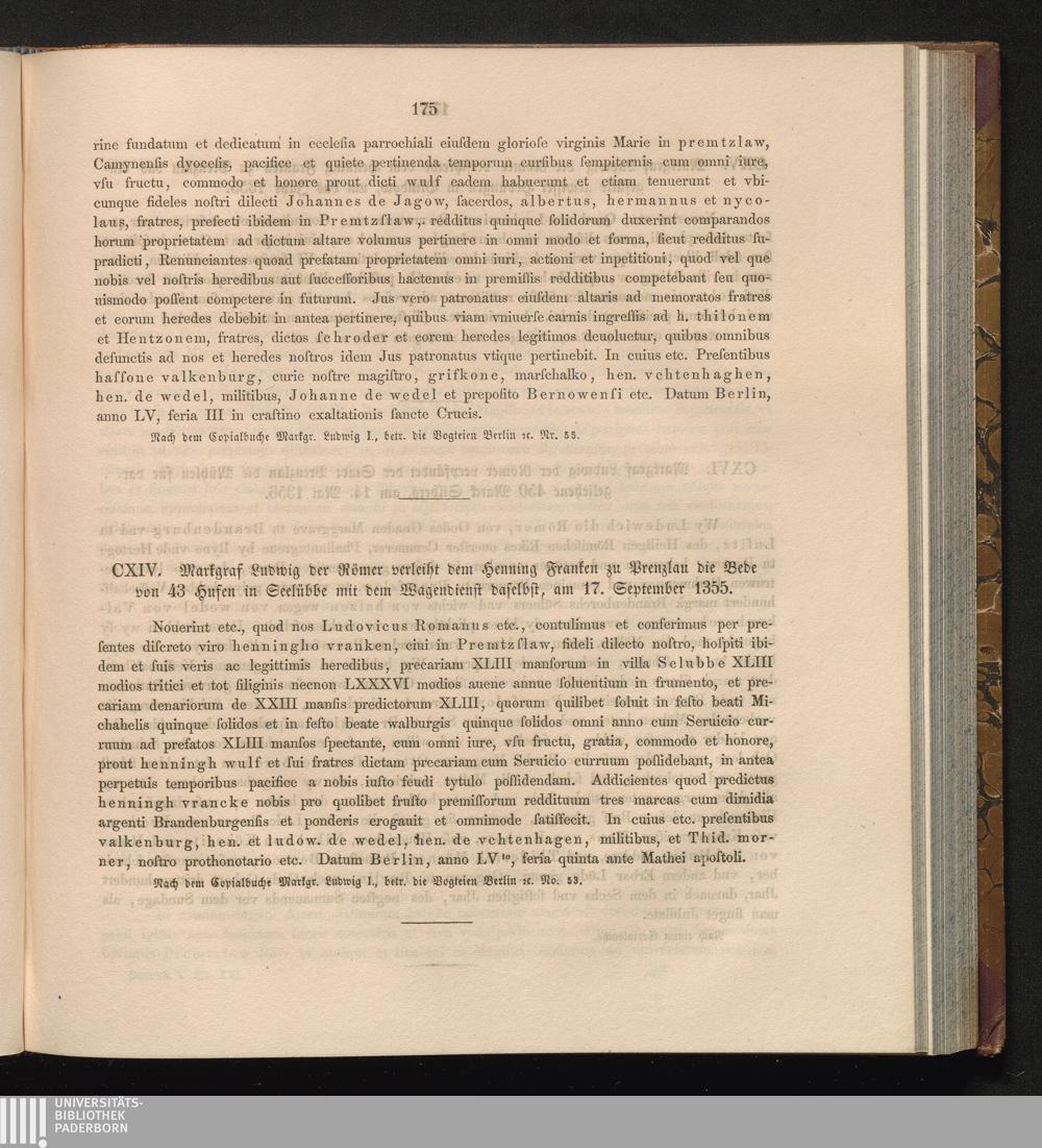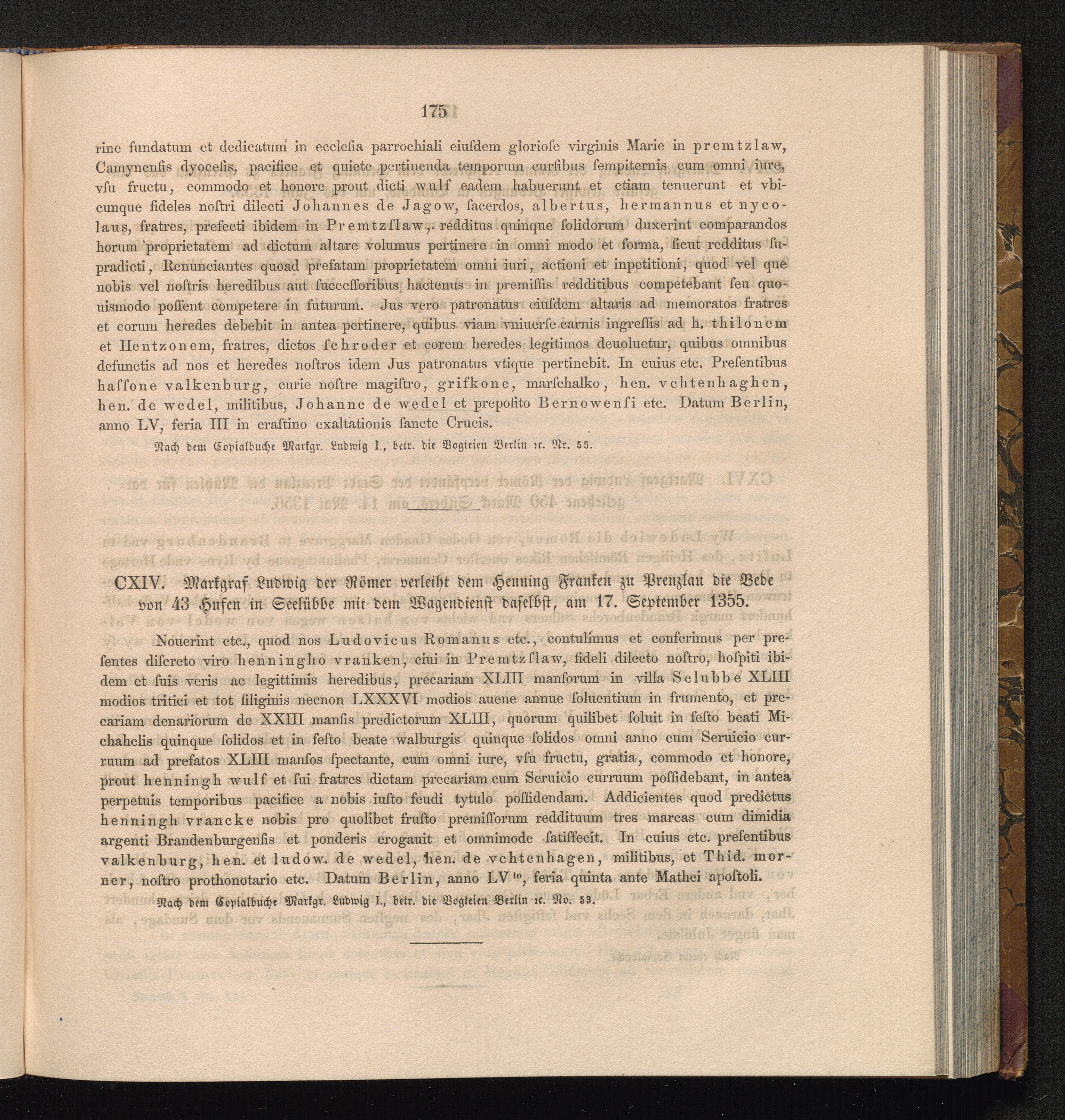 CXIV. Markgraf Ludwig der Römer verleiht dem Henning Franken zu Prenzlau die Bede[...]