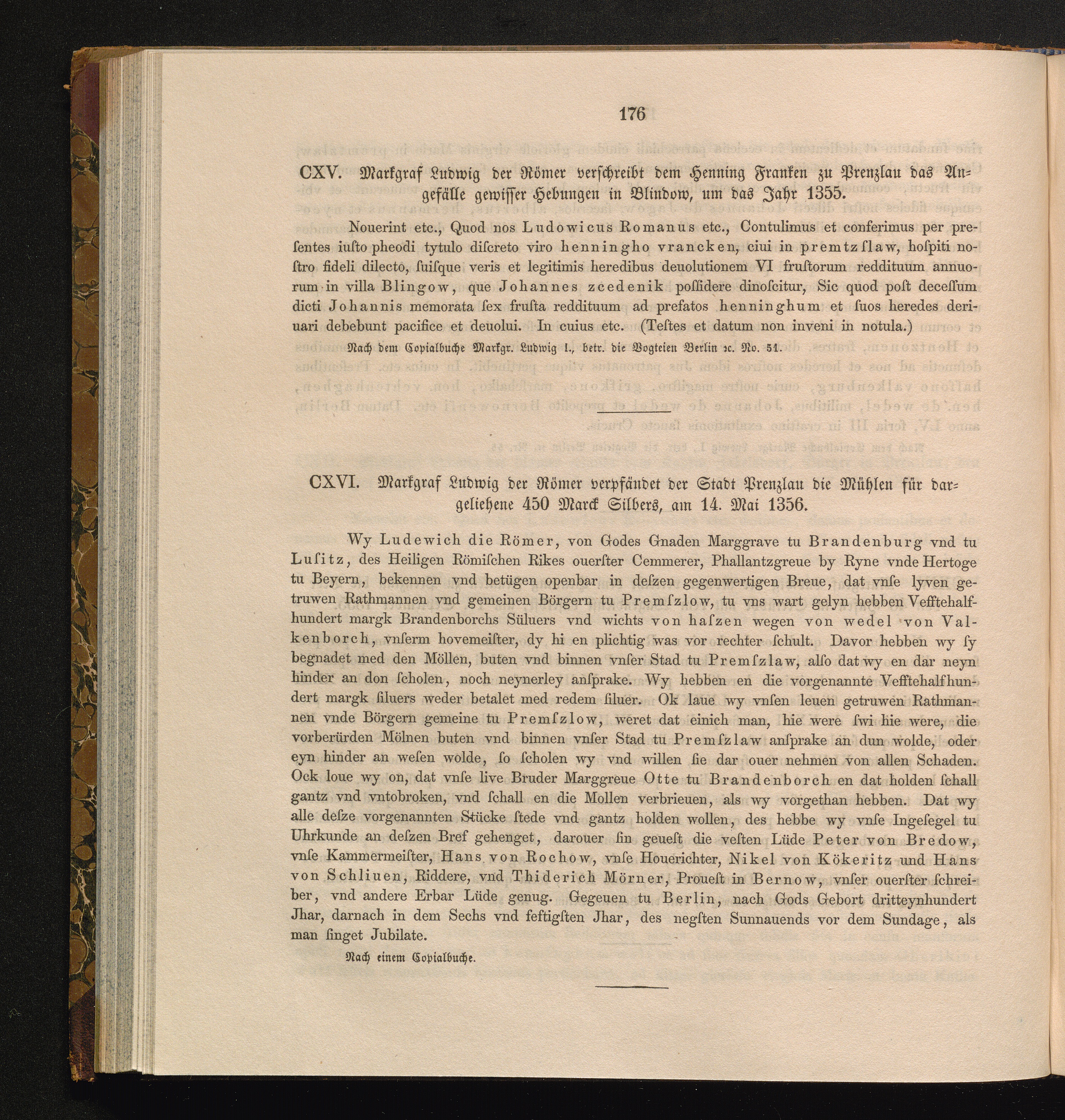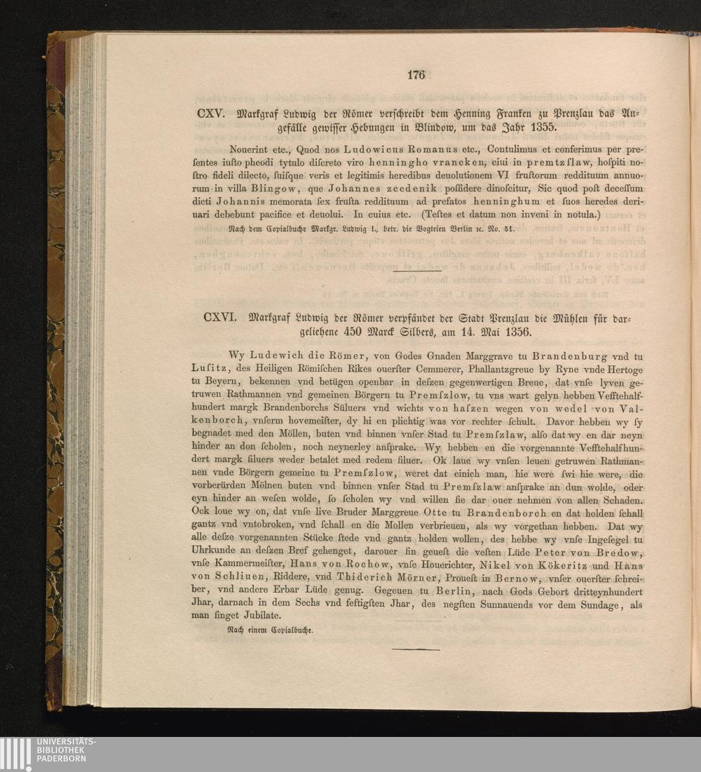 CXVI. Markgraf Ludwig der Römer verpfändet der Stadt Prenzlau die Mühlen für dargeliehene[...]