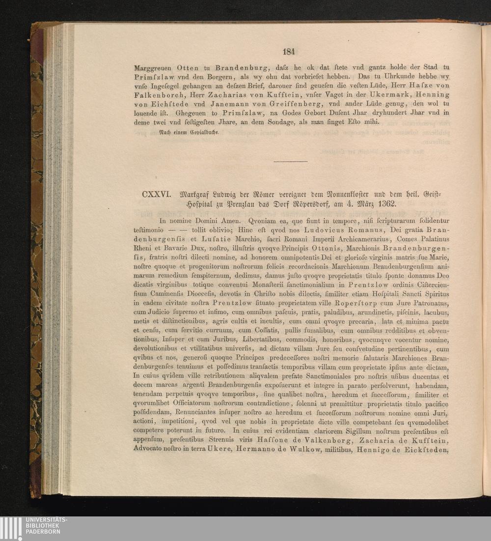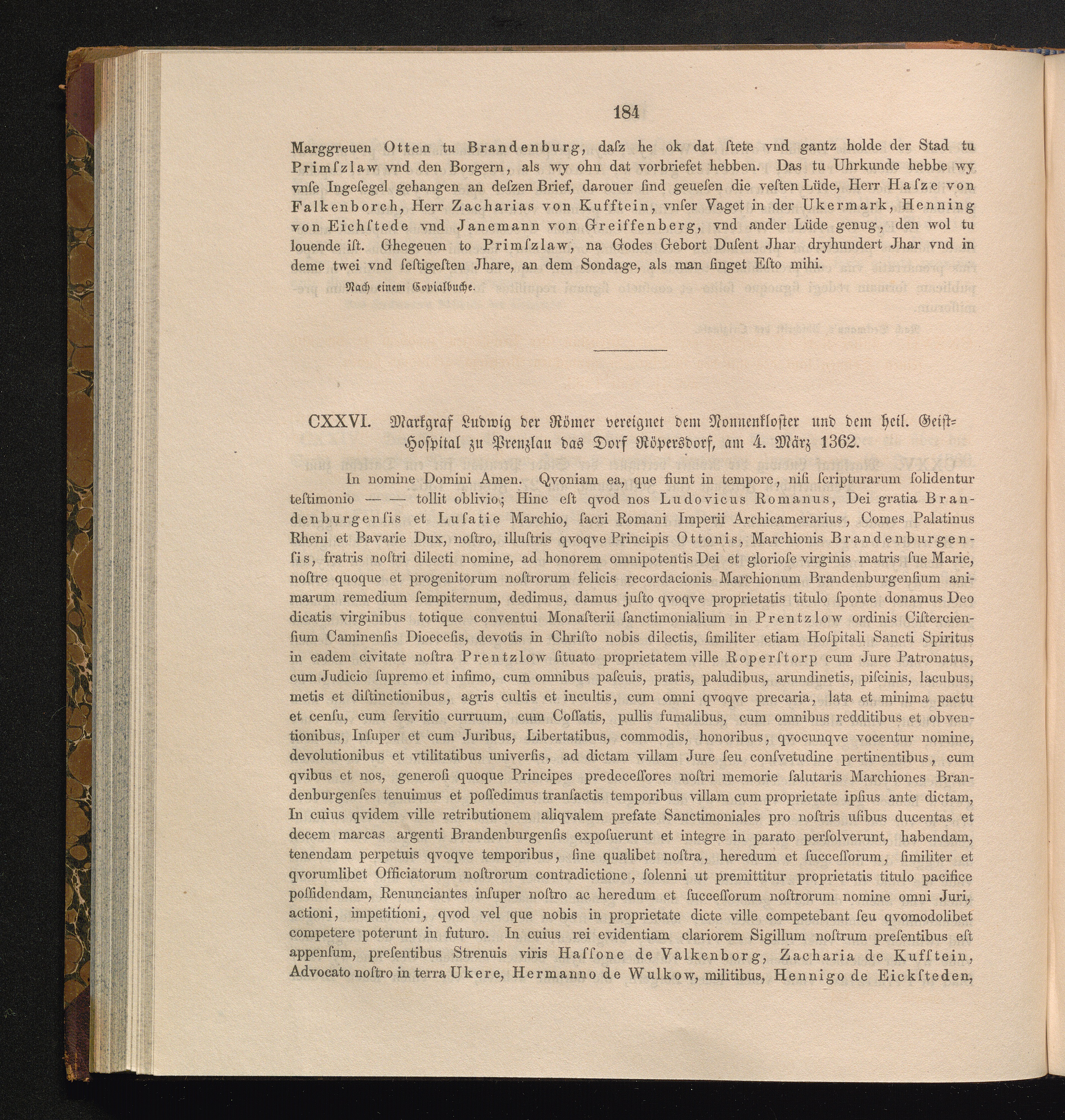 CXXVI. Markgraf Ludwig der Römer vereignet dem Nonnenkloster und dem heil. Geist-Hospital[...]